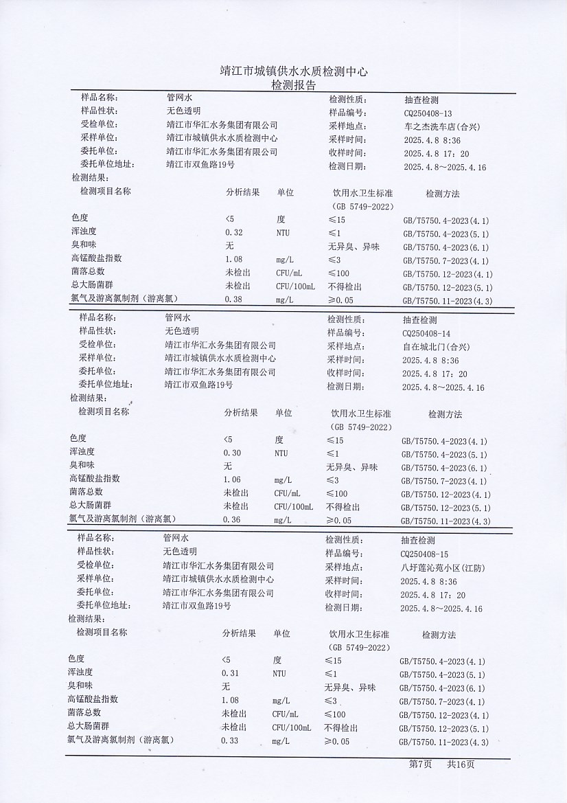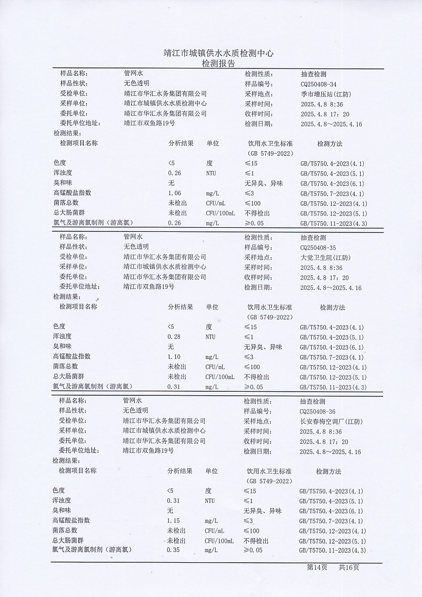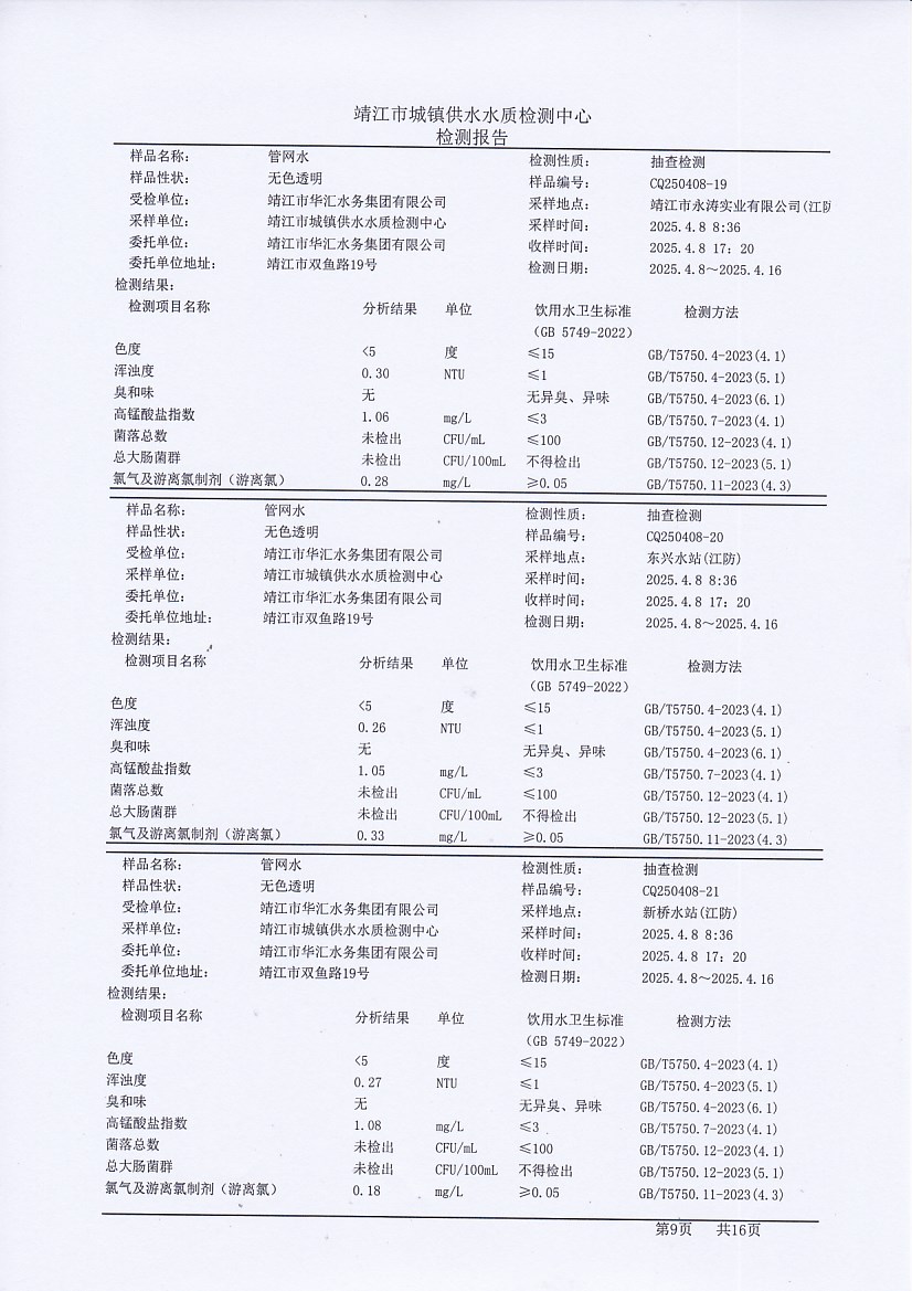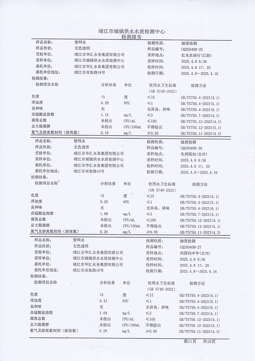 管網(wǎng)水檢測報(bào)告2025.4.8
