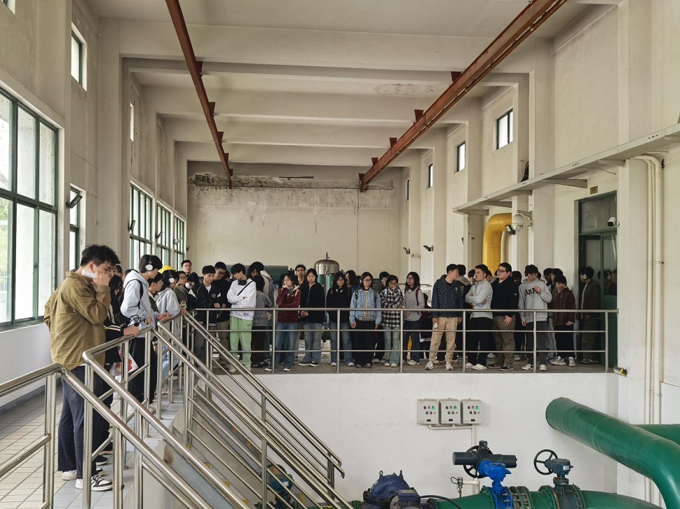 沿著水處理工藝流程,師生們系統(tǒng)觀摩了從機(jī)械混合折板絮凝到清水出庫的全流程。在機(jī)械混合折板絮凝平流沉淀池前,工作人員詳解絮凝劑投加原理;V型砂濾池旁,師生圍繞濾料級配展開探討;臭氧接觸池與活性炭濾池區(qū)域,深度處理工藝的協(xié)同效應(yīng)引發(fā)陣陣贊嘆。當(dāng)參觀至尾水處理系統(tǒng)時(shí),水廠踐行綠色生產(chǎn)的責(zé)任擔(dān)當(dāng)更讓同學(xué)們深切體會(huì)生態(tài)優(yōu)先的發(fā)展理念。