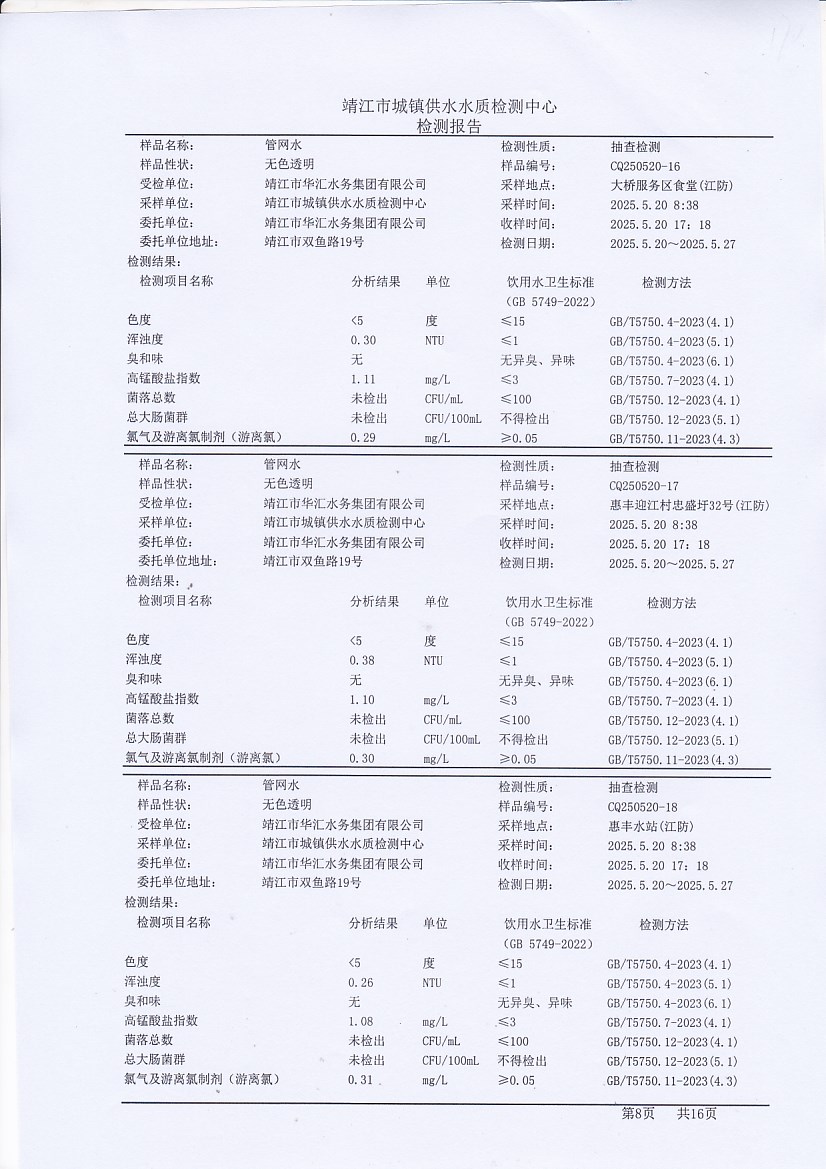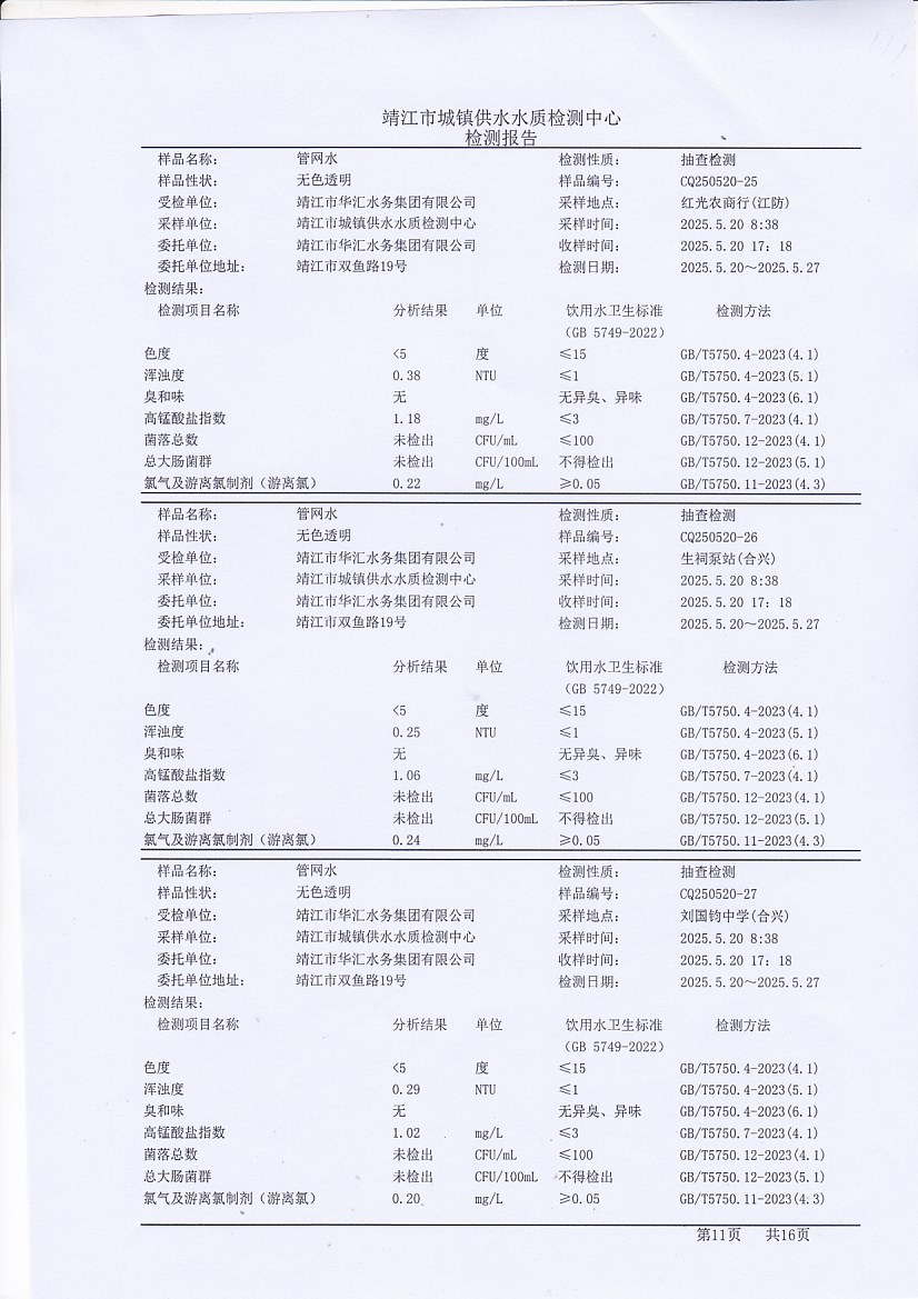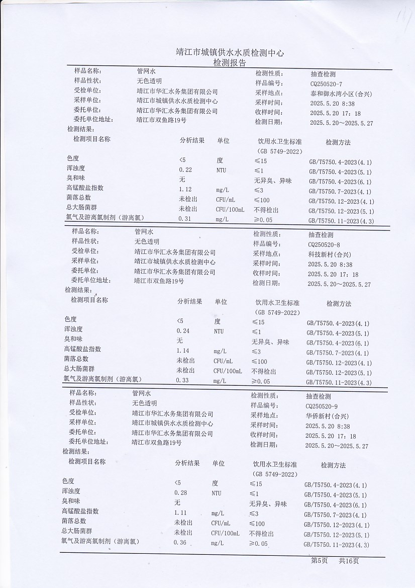 管網(wǎng)水檢測報告2025.5.20