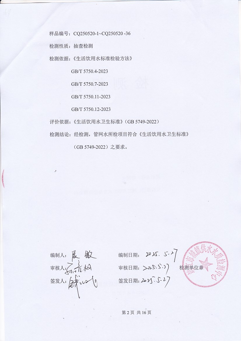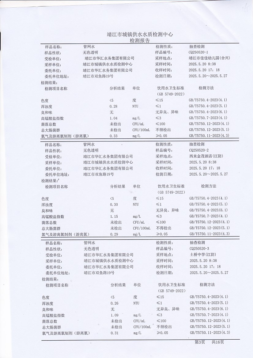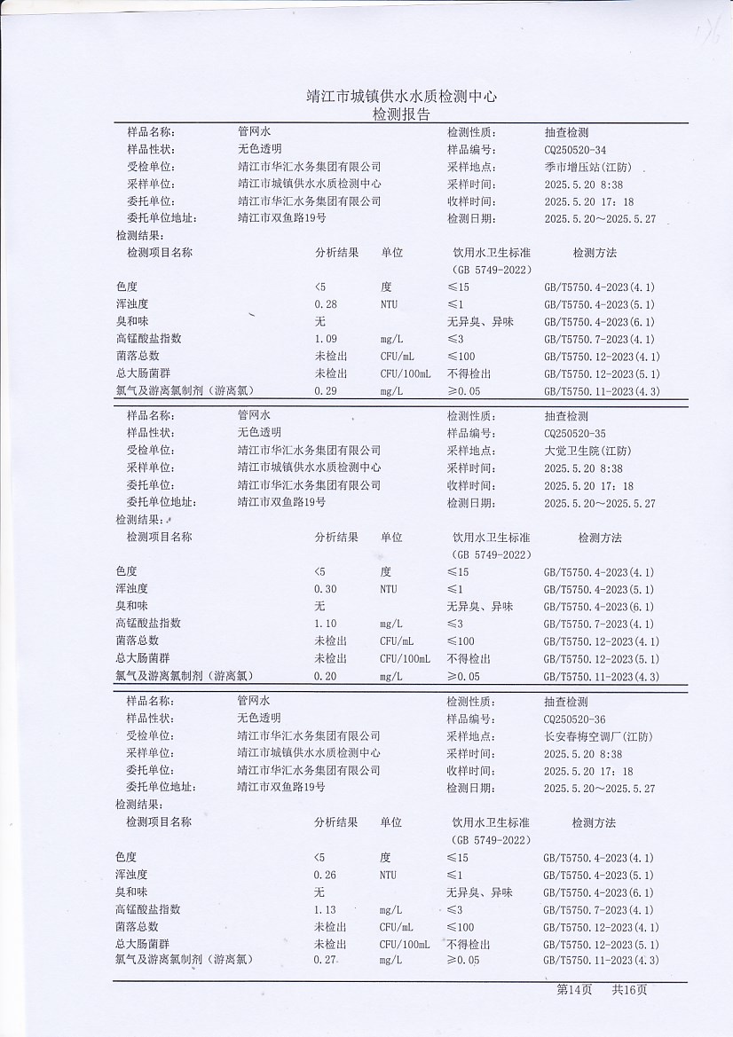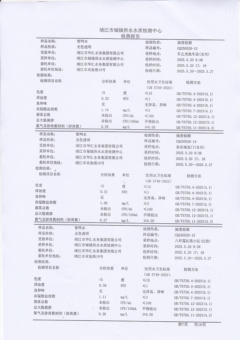 管網(wǎng)水檢測報告2025.5.20