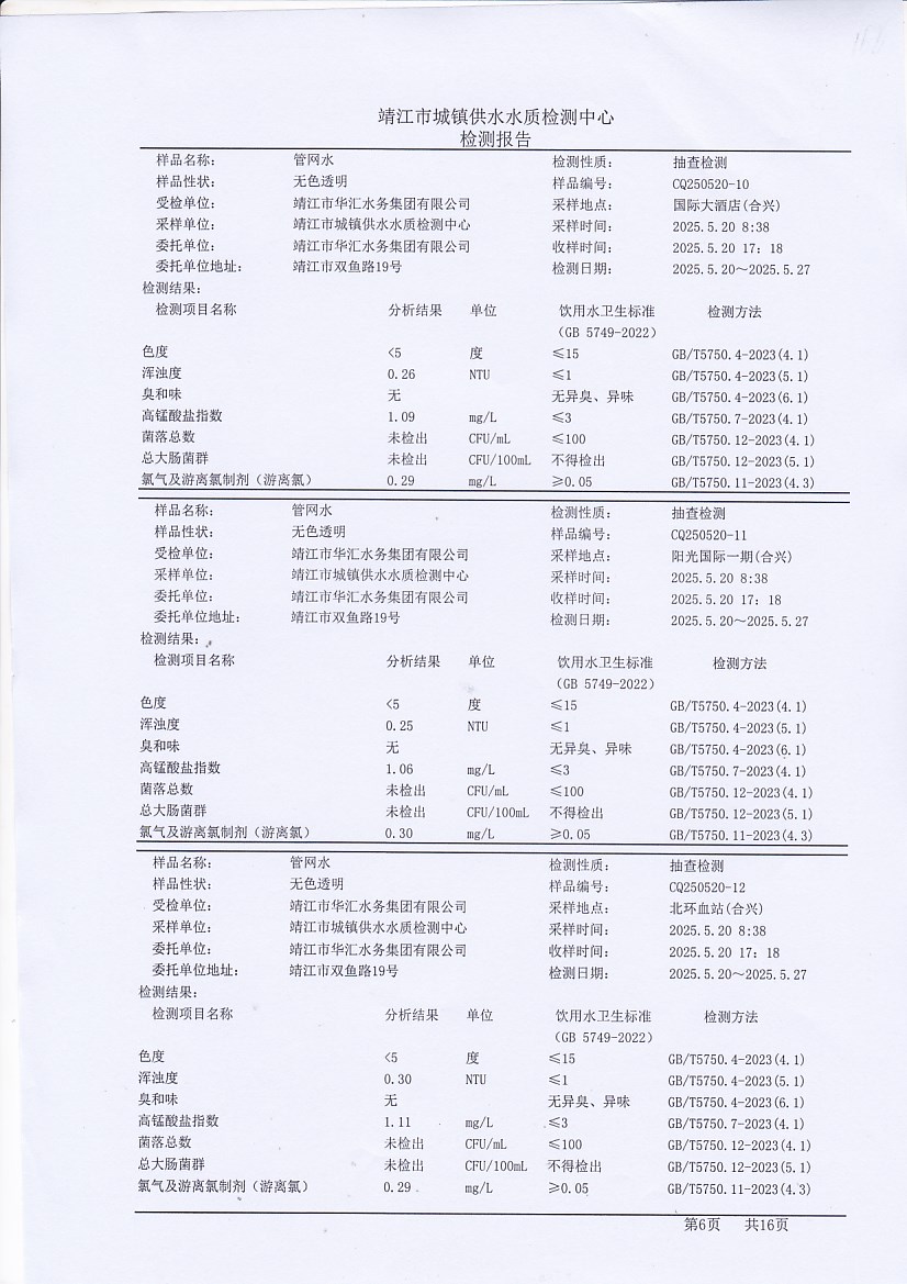 管網(wǎng)水檢測報告2025.6.10