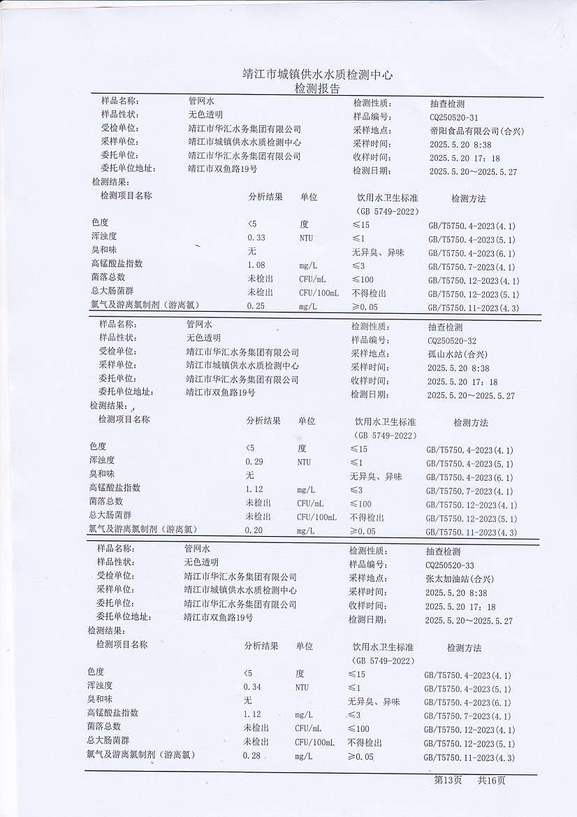 管網(wǎng)水檢測報告2025.5.13