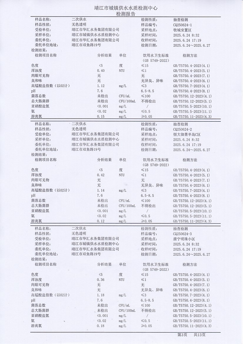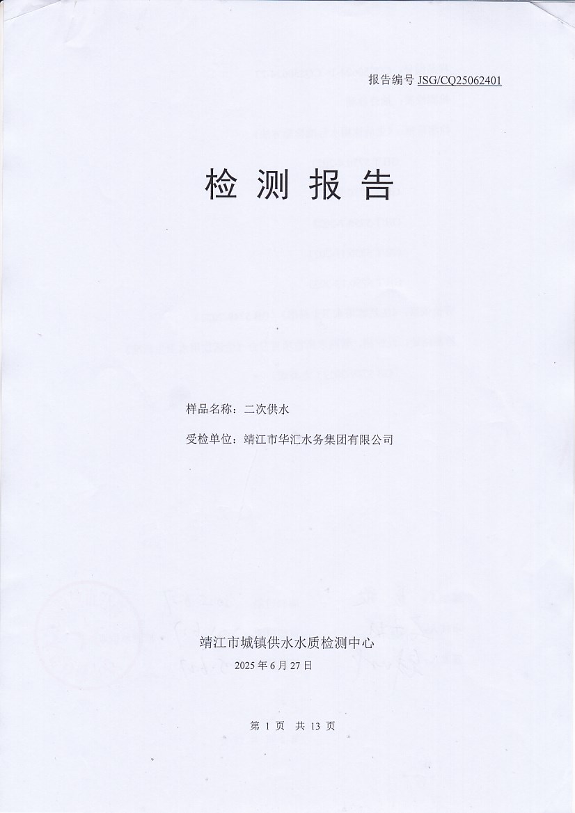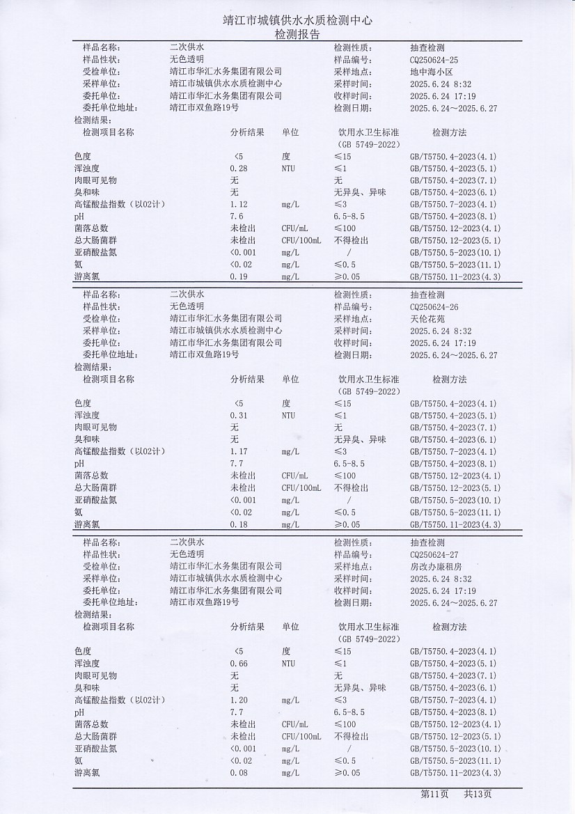 二次供水檢測(cè)報(bào)告2025.6.25