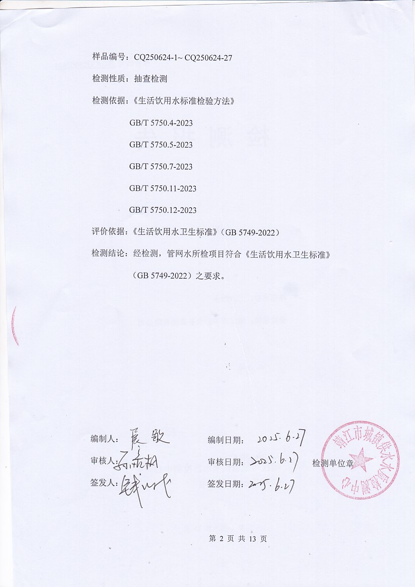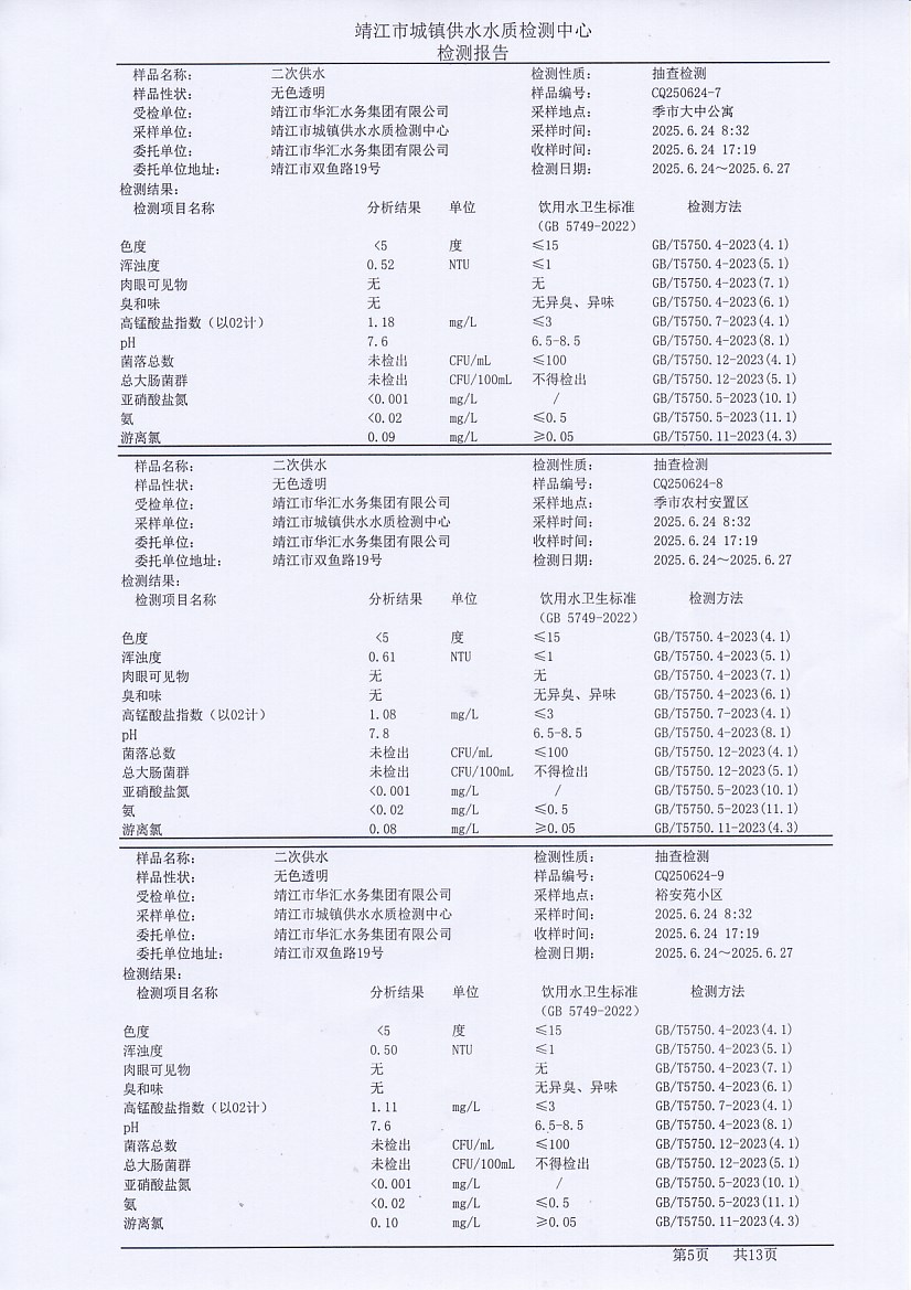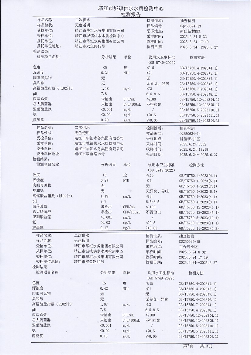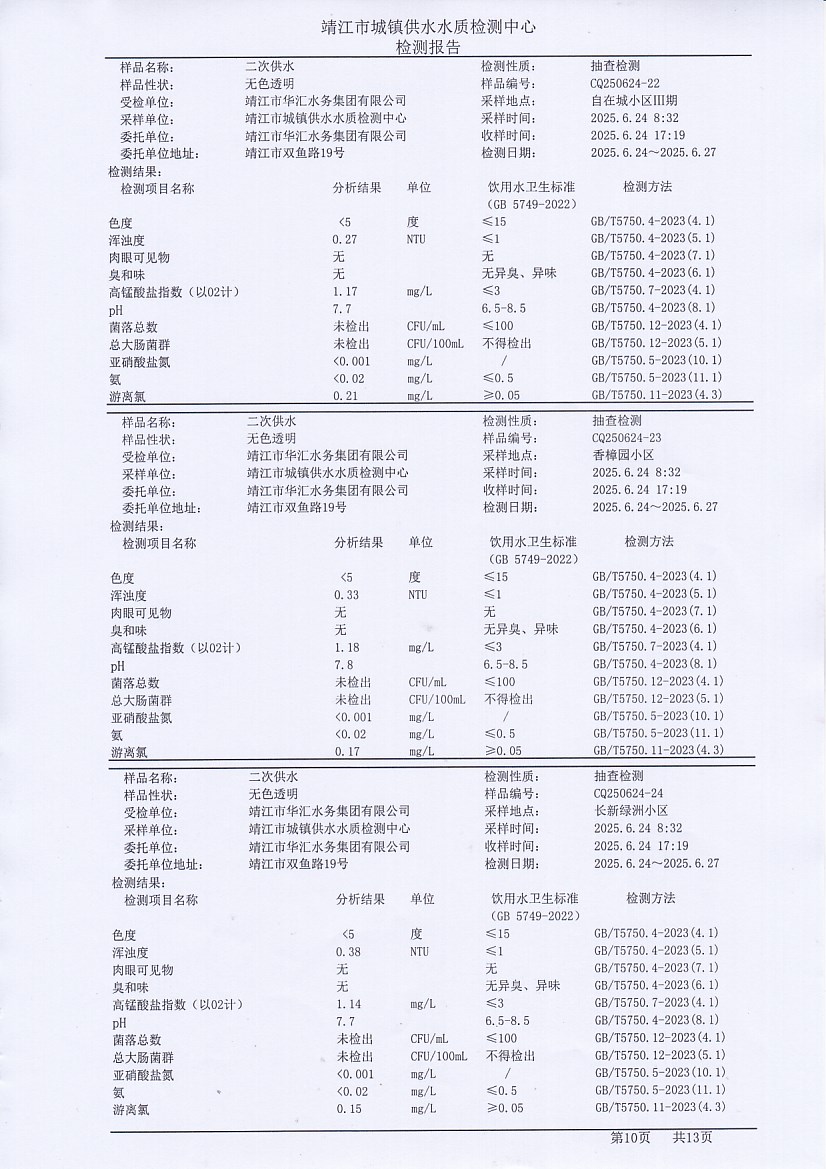 二次供水檢測(cè)報(bào)告2025.6.25