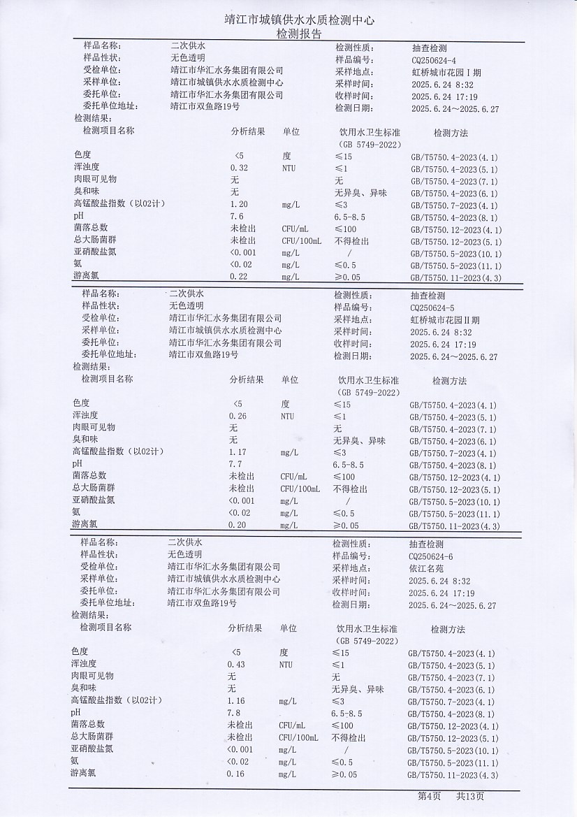 二次供水檢測(cè)報(bào)告2025.6.24