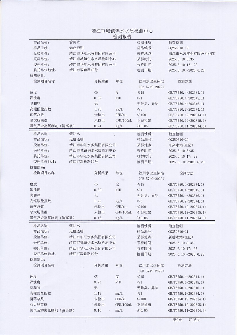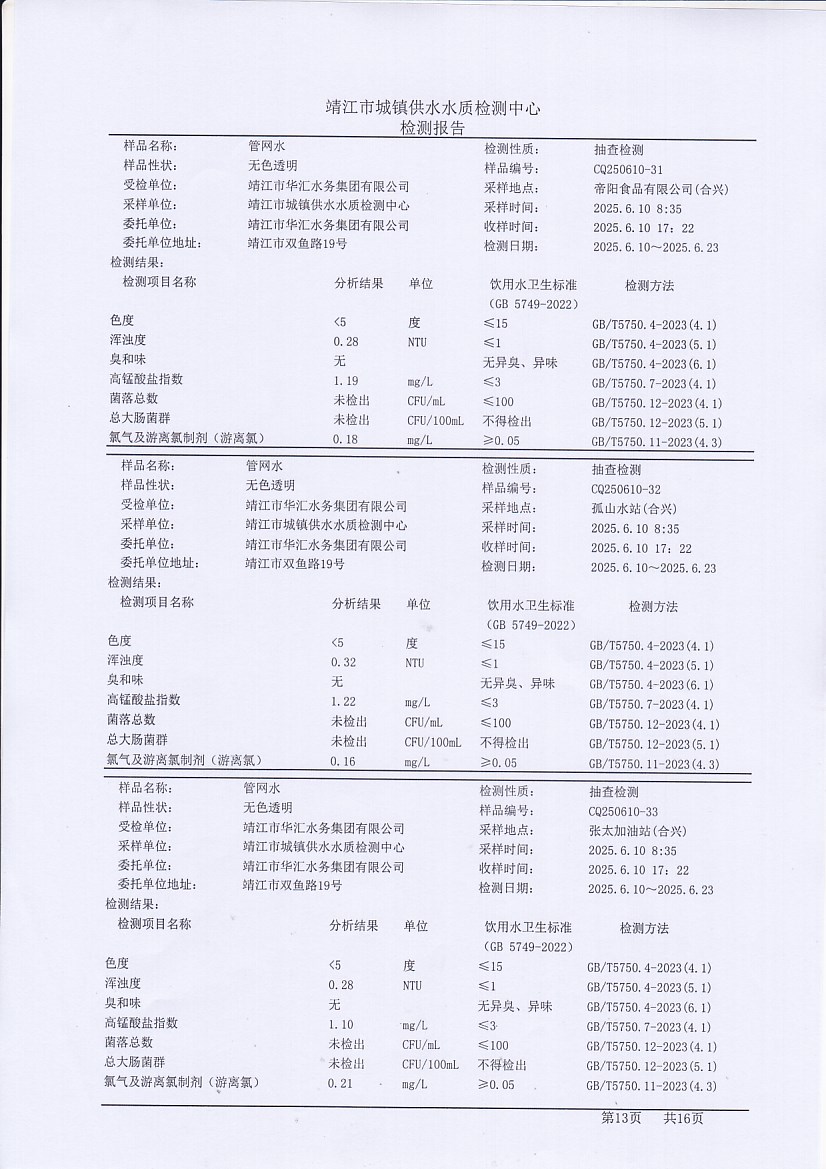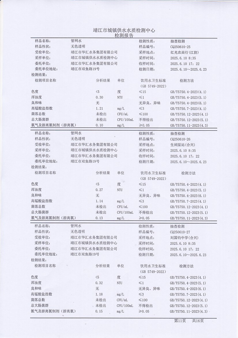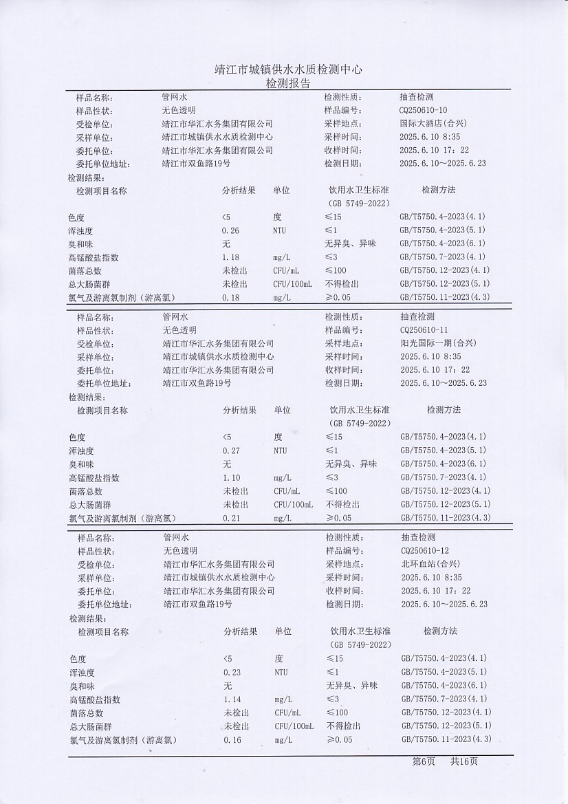管網(wǎng)水檢測報告2025.6.10