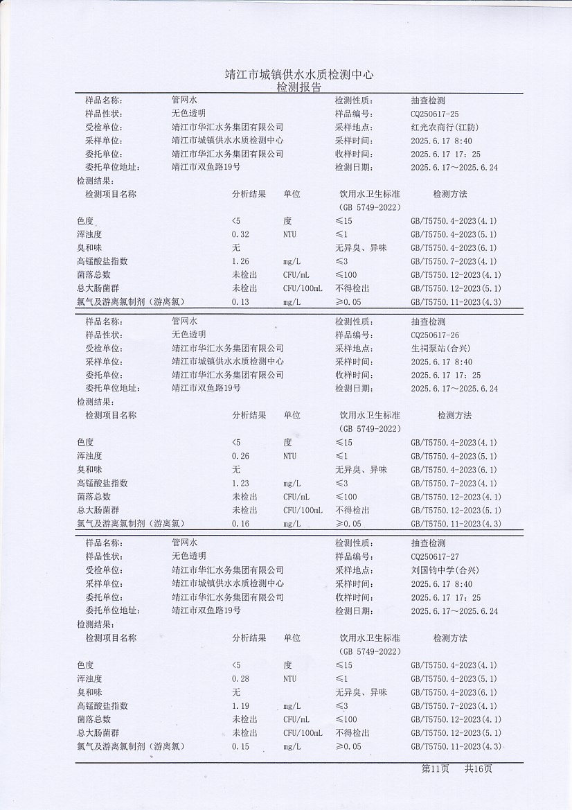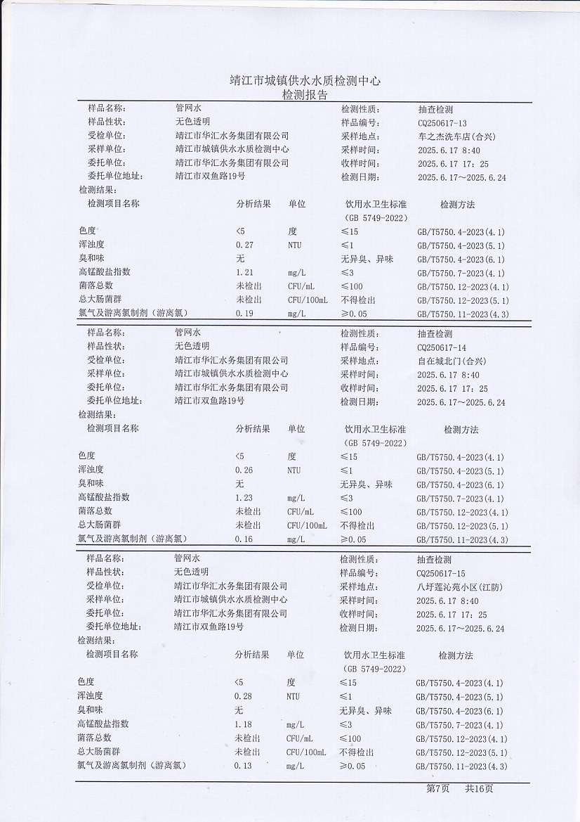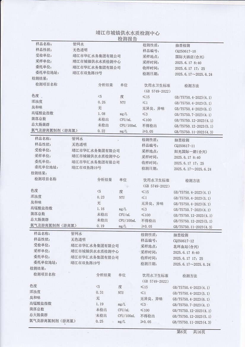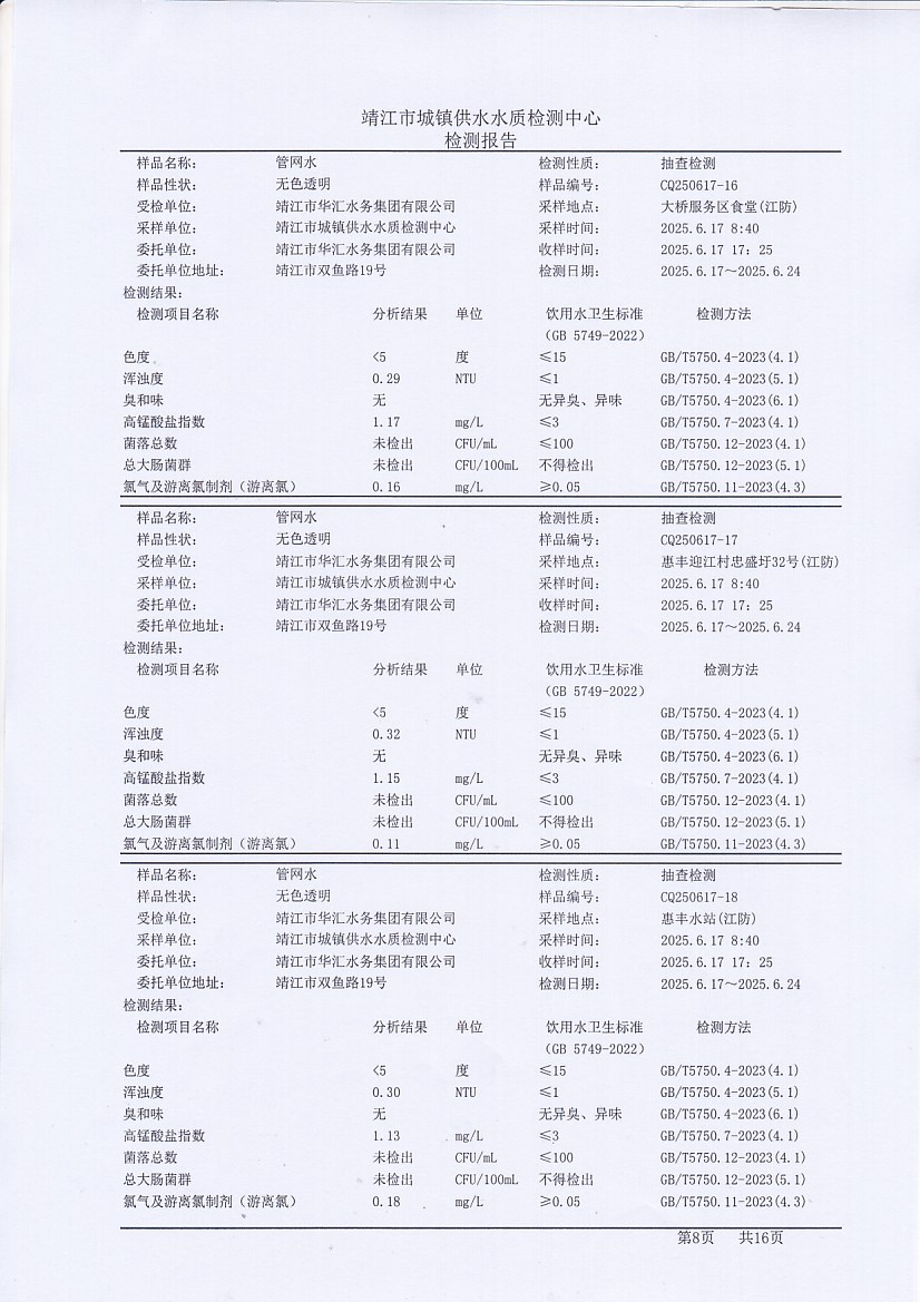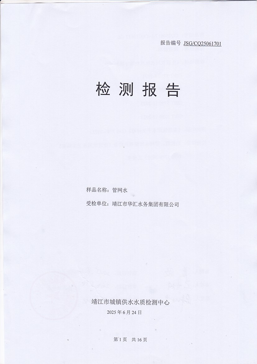 管網(wǎng)水檢測報告2025.6.17