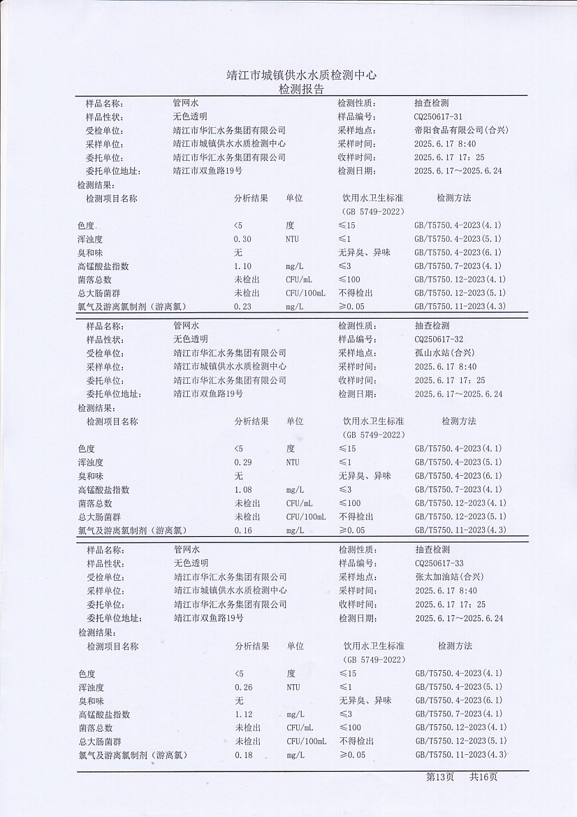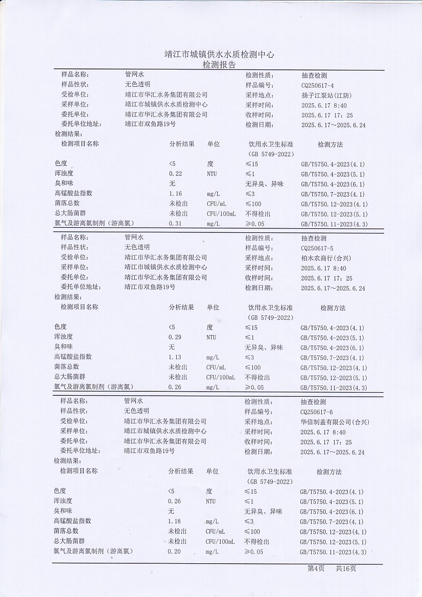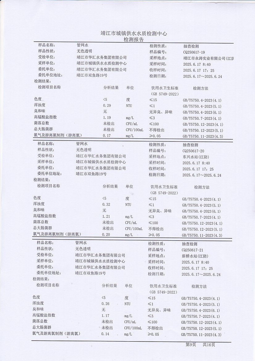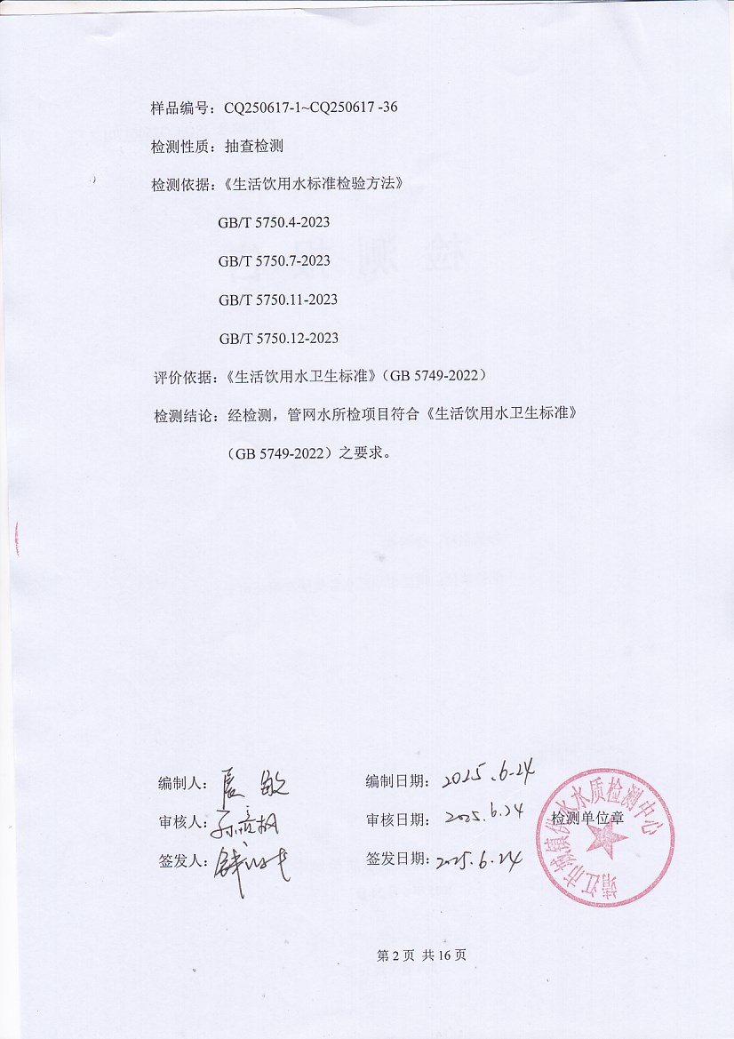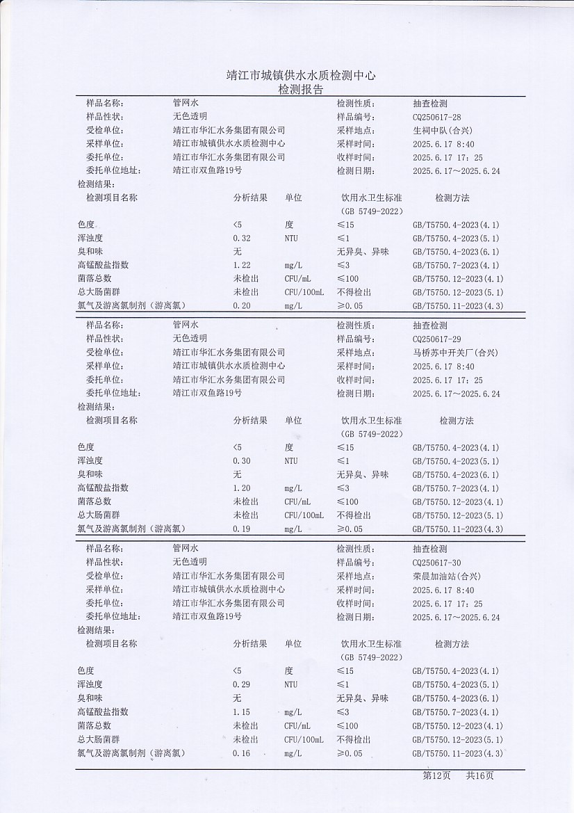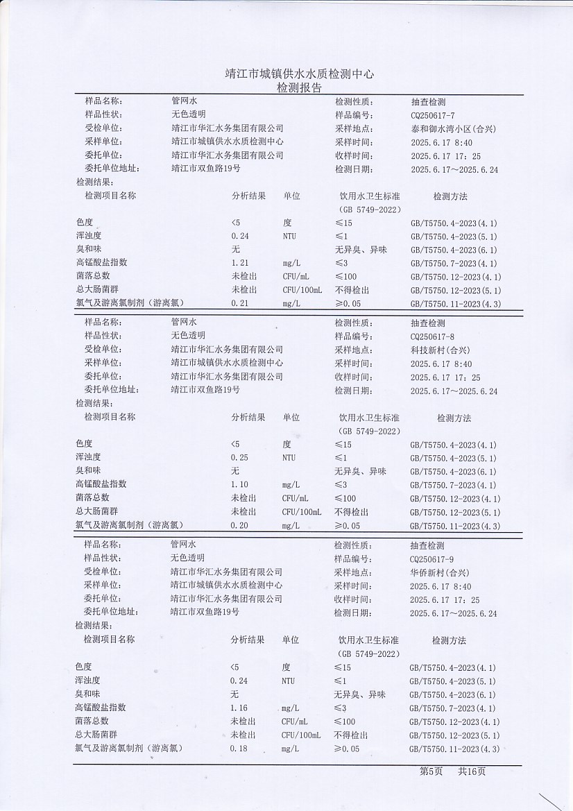 管網(wǎng)水檢測報告2025.6.17