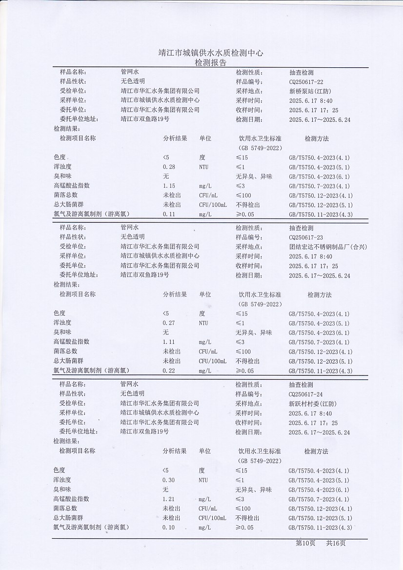 管網(wǎng)水檢測報告2025.6.10