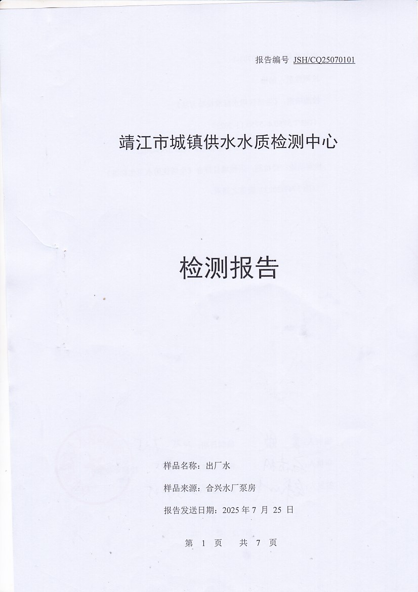 出廠水檢測(cè)報(bào)告2025.7.1