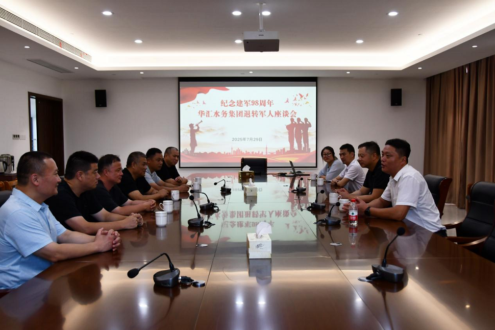 7月29日下午,靖江市退役軍人事務(wù)局副局長(zhǎng)蔡建勇來到華匯水務(wù)集團(tuán),親切慰問退轉(zhuǎn)軍人代表并致以節(jié)日問候。