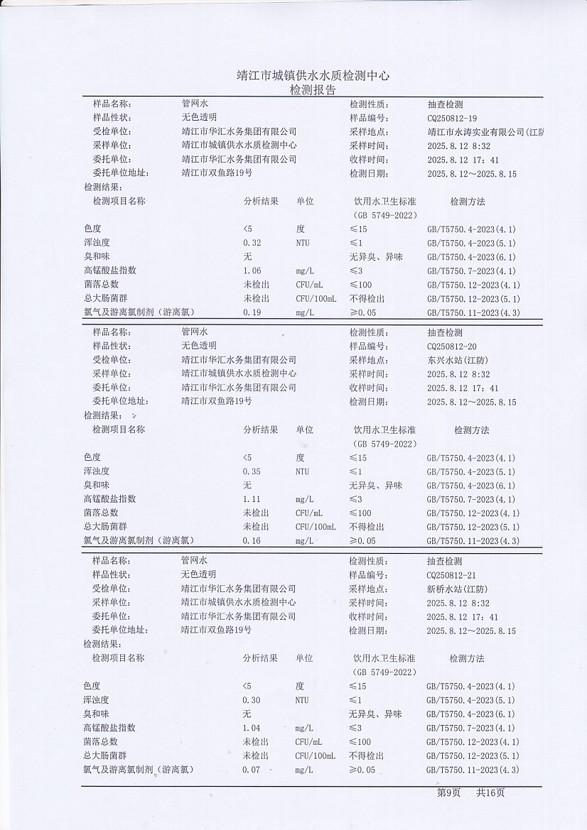 管網(wǎng)水檢測(cè)報(bào)告2025.8.19