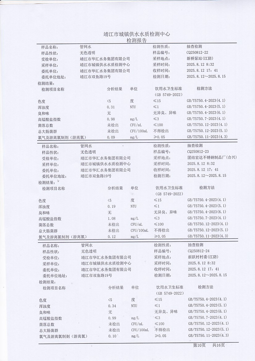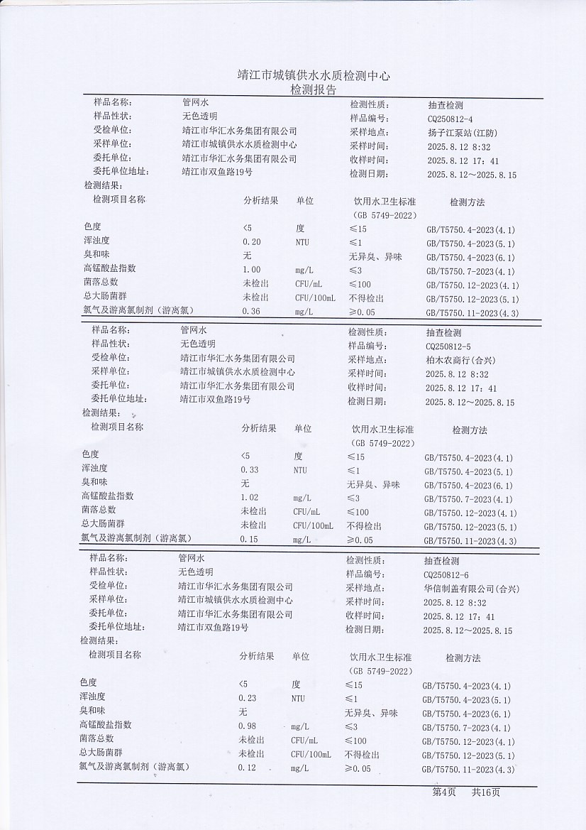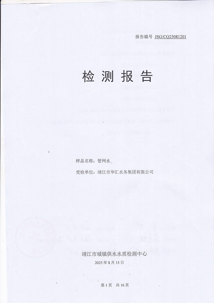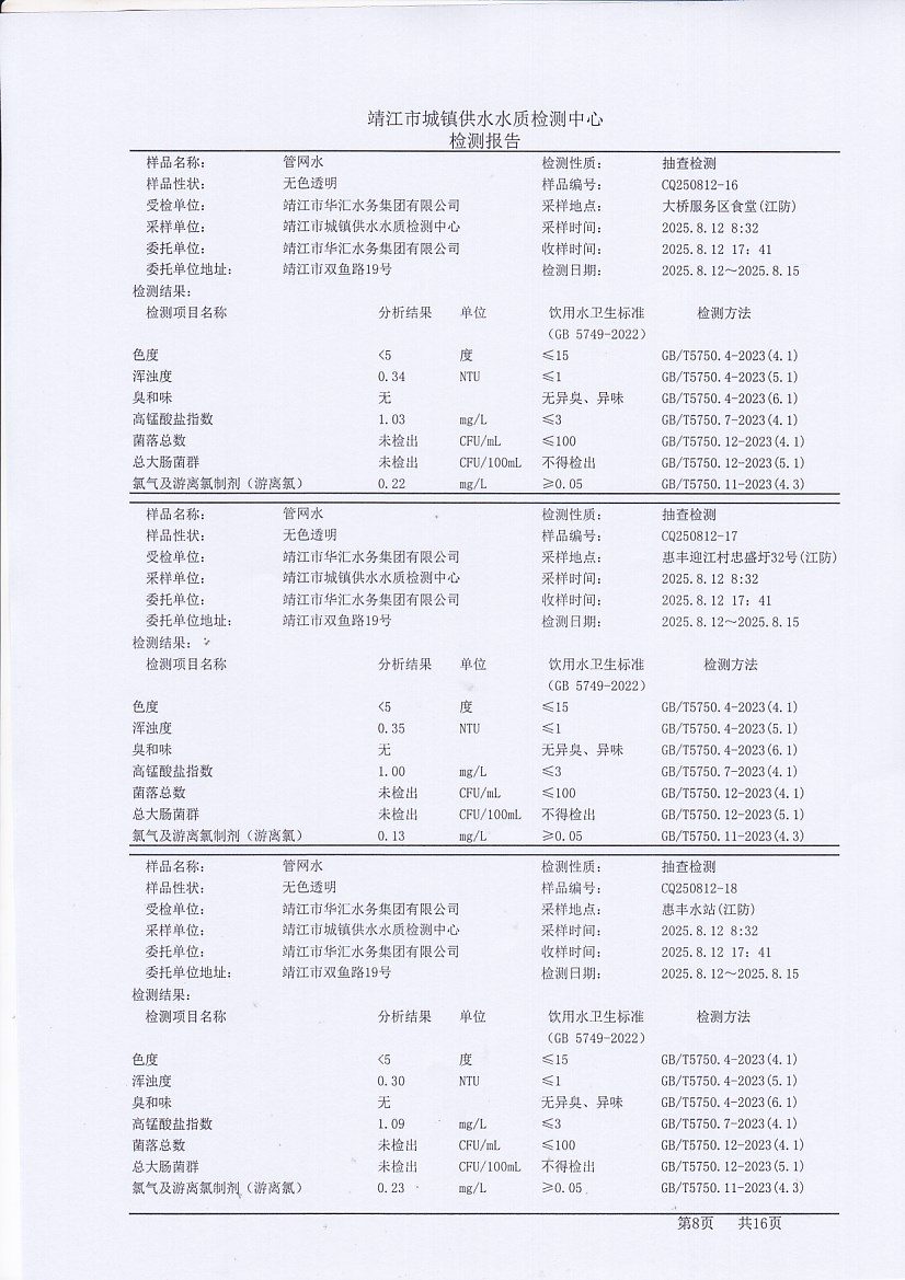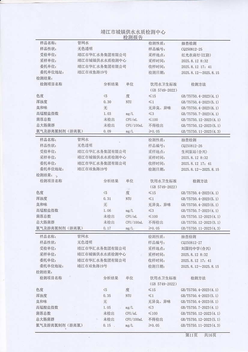 管網(wǎng)水檢測(cè)報(bào)告2025.8.12