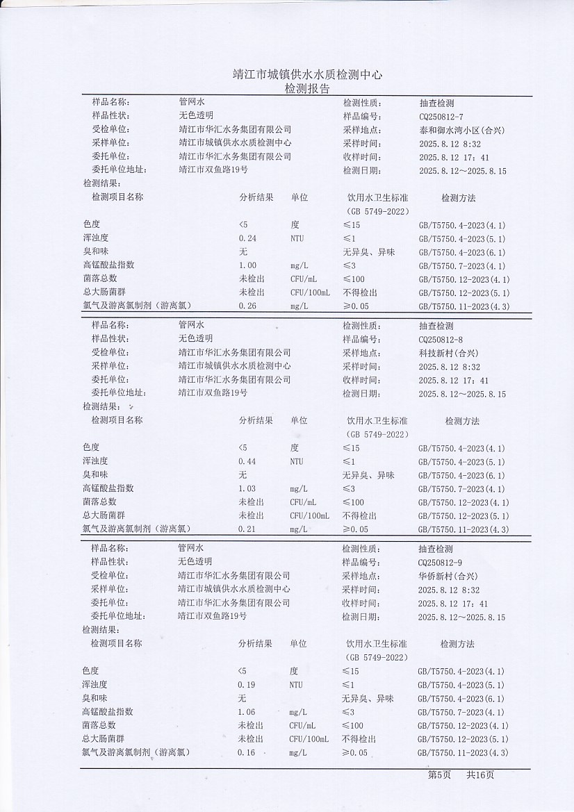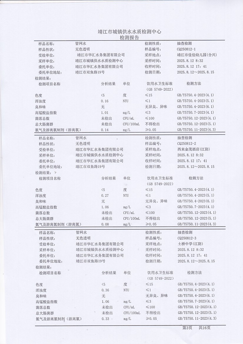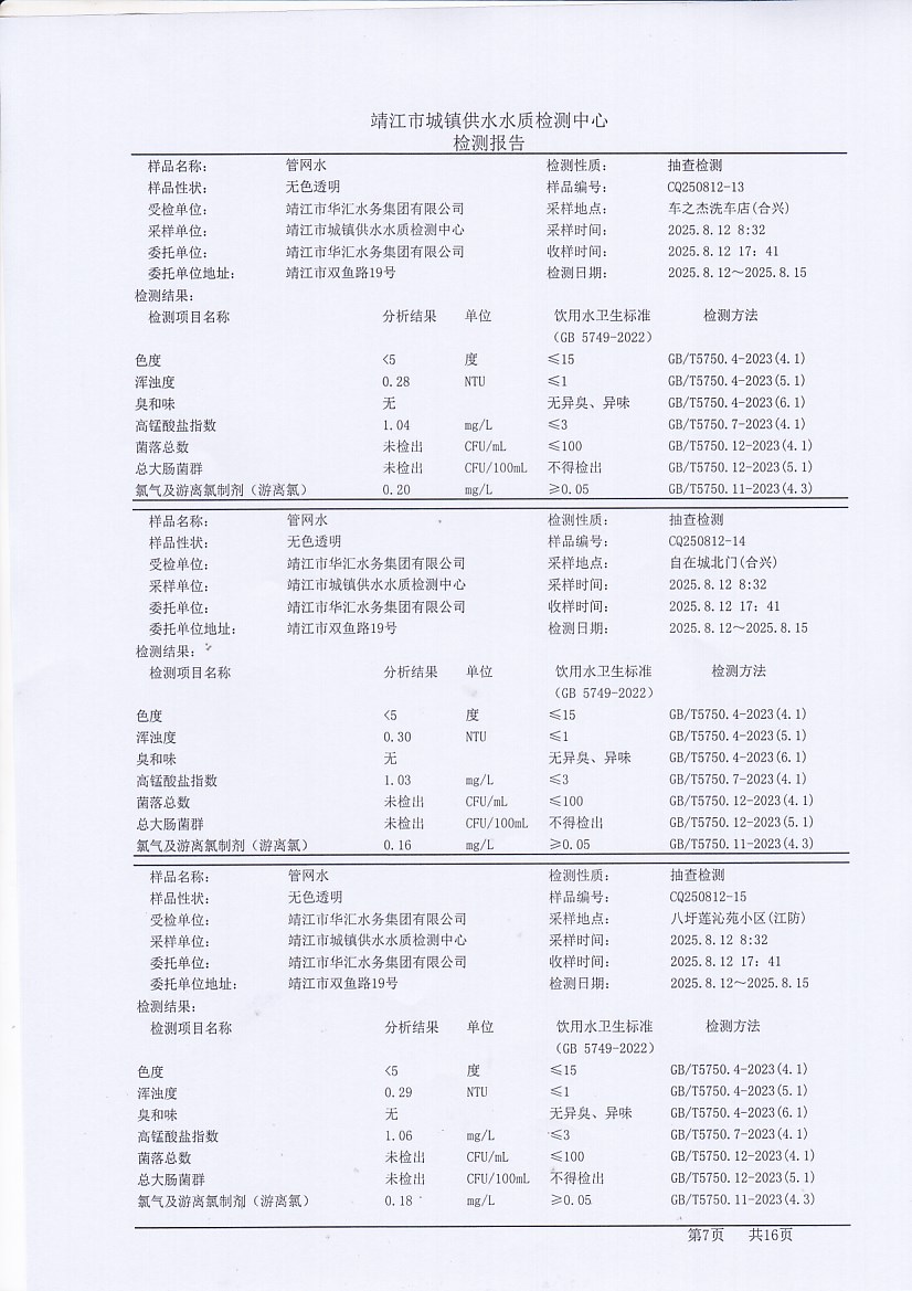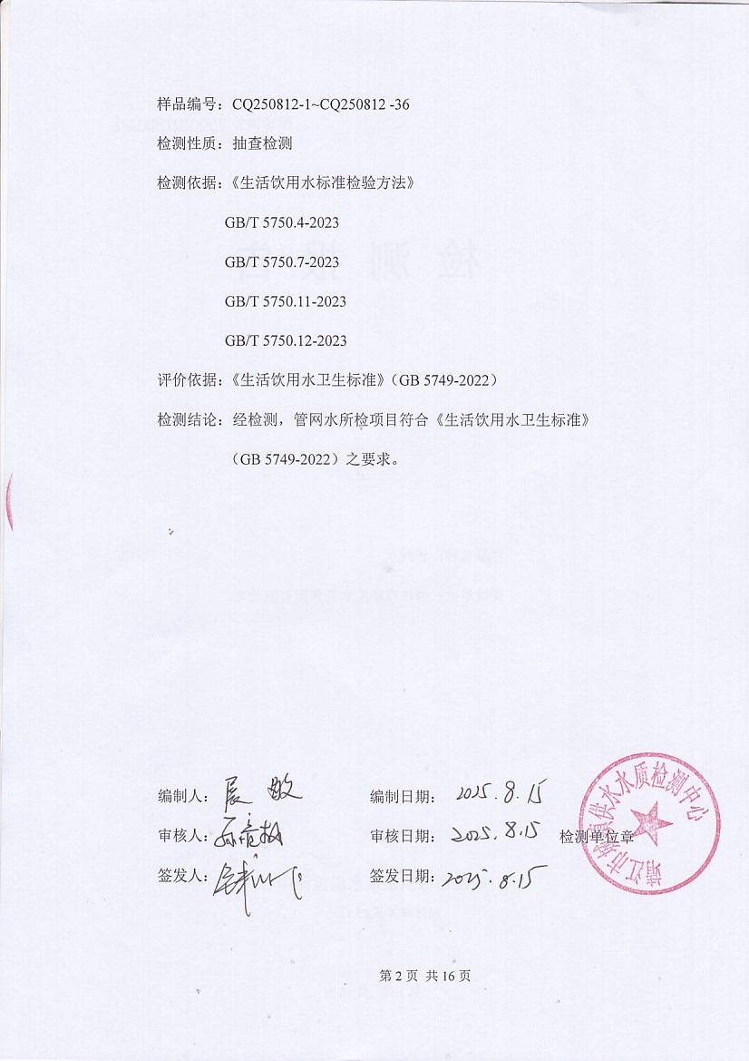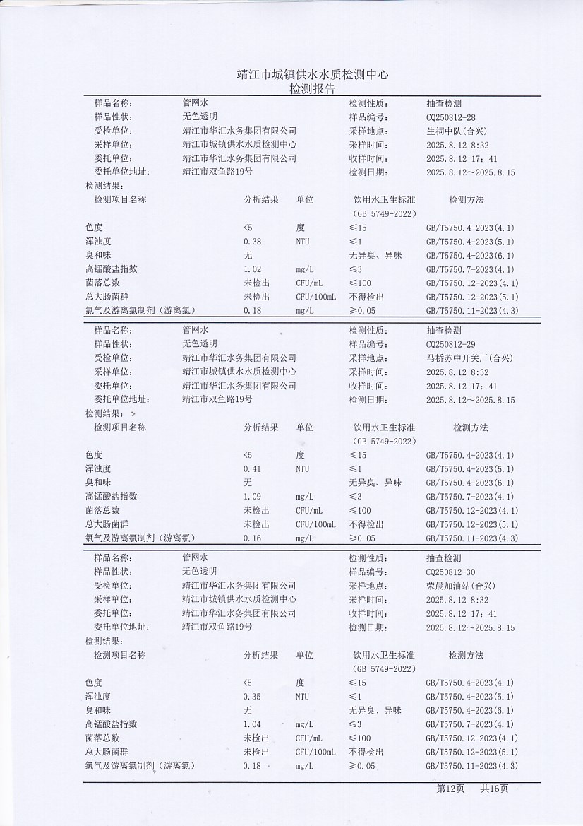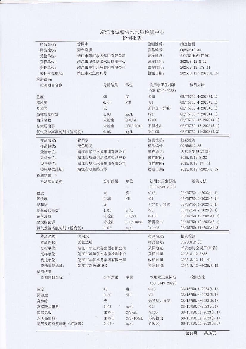 管網(wǎng)水檢測(cè)報(bào)告2025.8.12