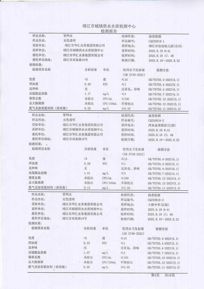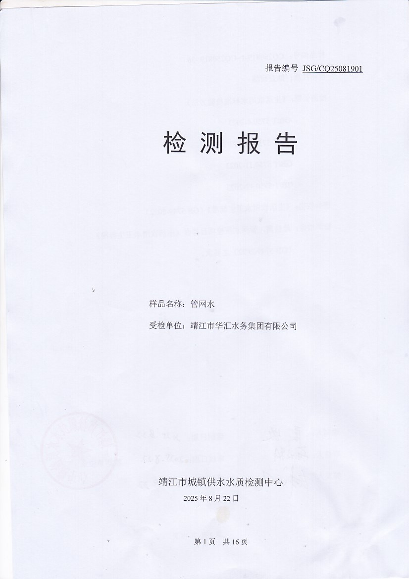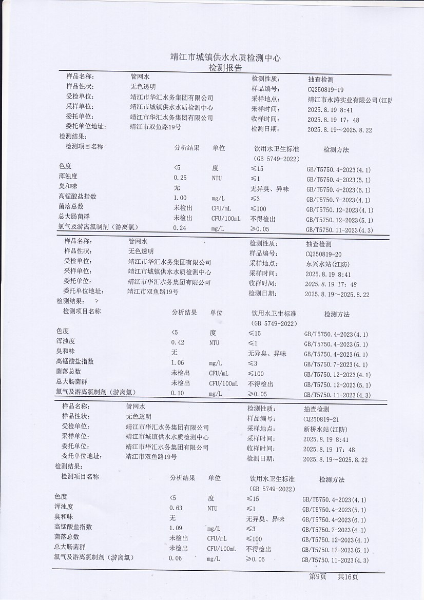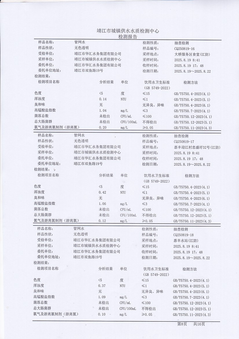 管網(wǎng)水檢測(cè)報(bào)告2025.8.19