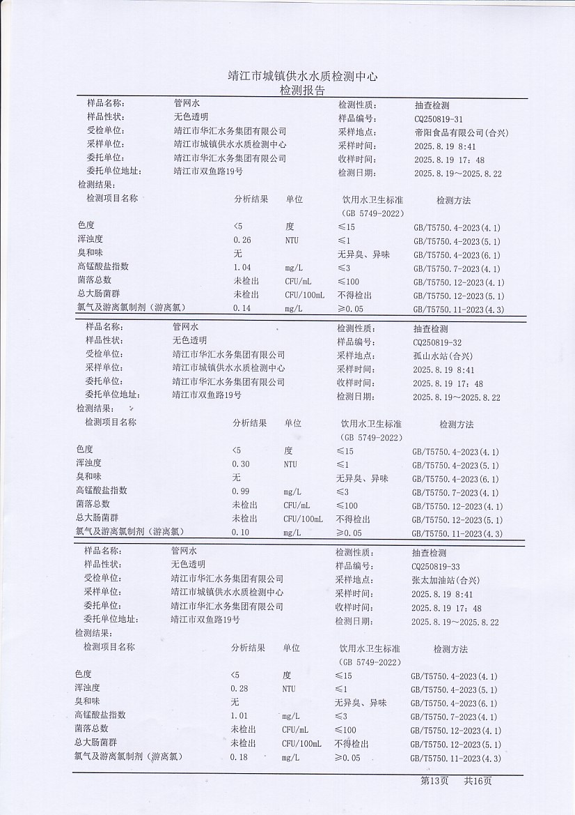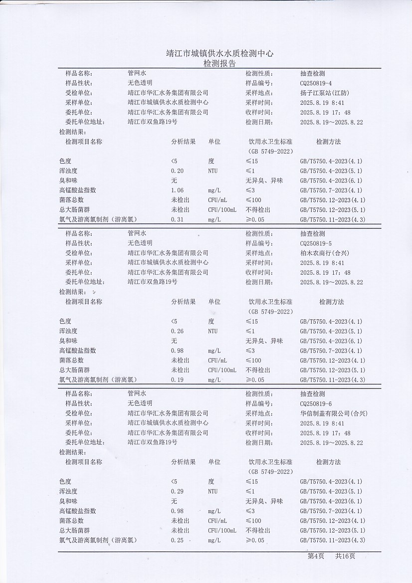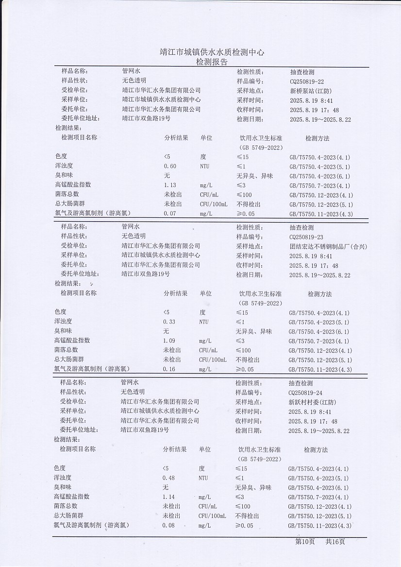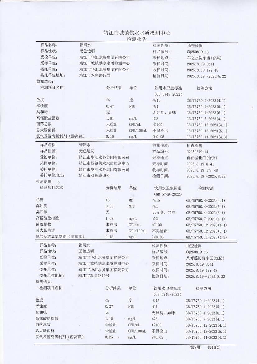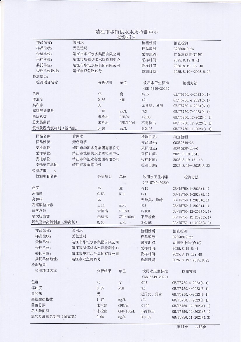 管網(wǎng)水檢測(cè)報(bào)告2025.8.19
