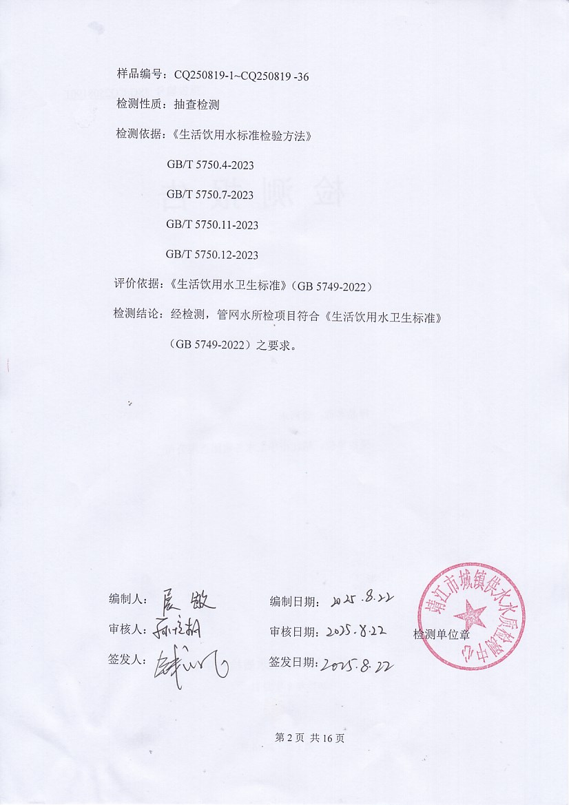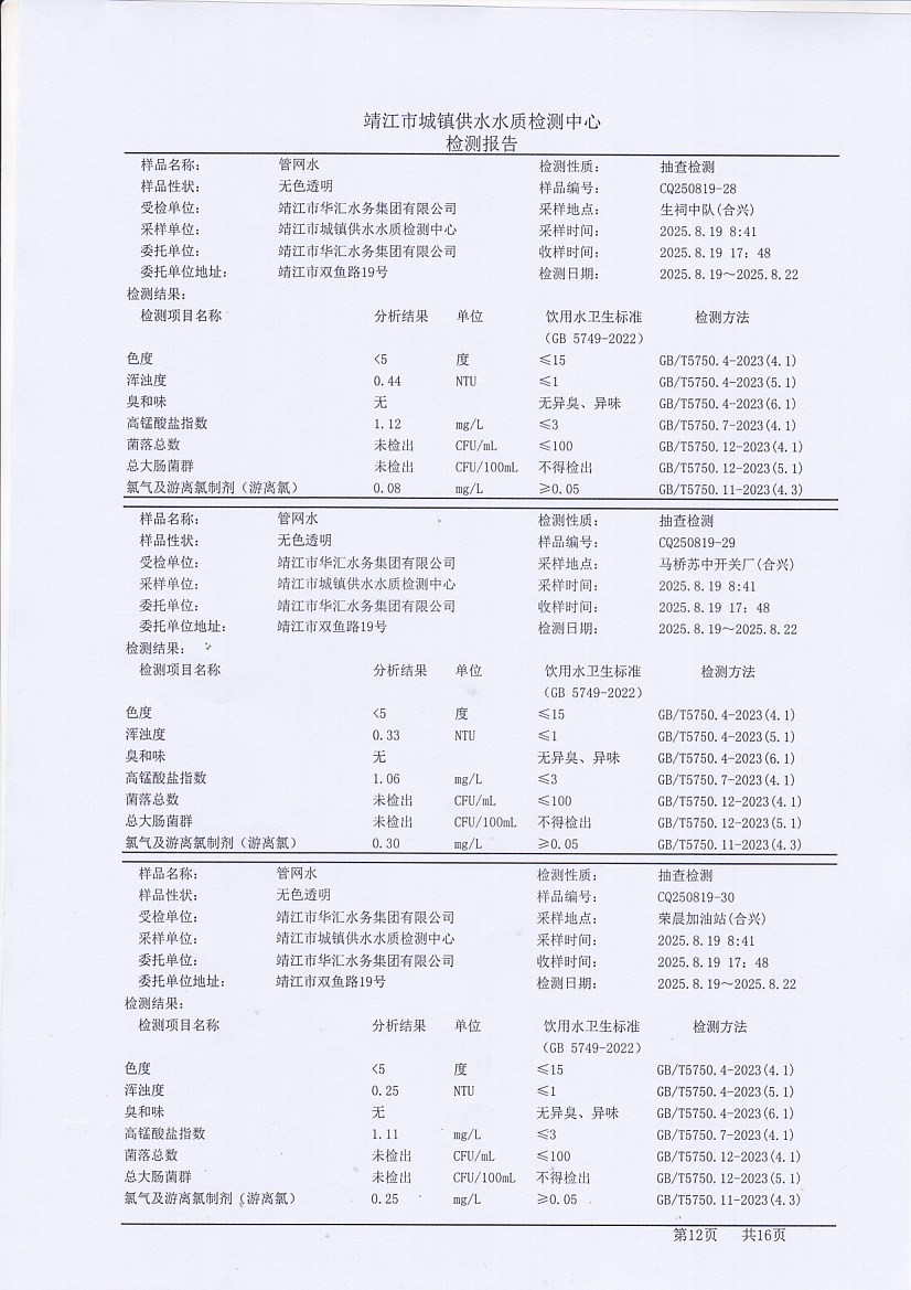 管網(wǎng)水檢測(cè)報(bào)告2025.8.12