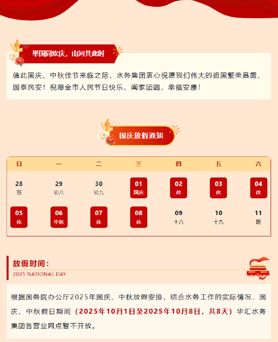 水務(wù)集團(tuán)恭祝全市人民國(guó)慶、中秋“雙節(jié)”快樂(lè)