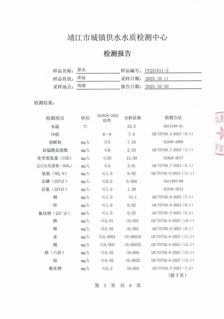 信息來源:華匯水務 ‖ 發(fā)稿作者:水質檢驗部 ‖ 發(fā)布時間:2025年10月30日 ‖ 查看244次 ‖