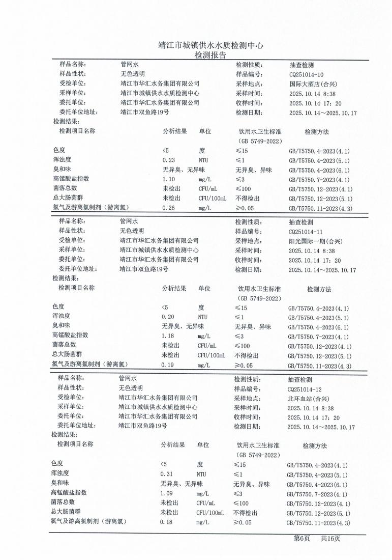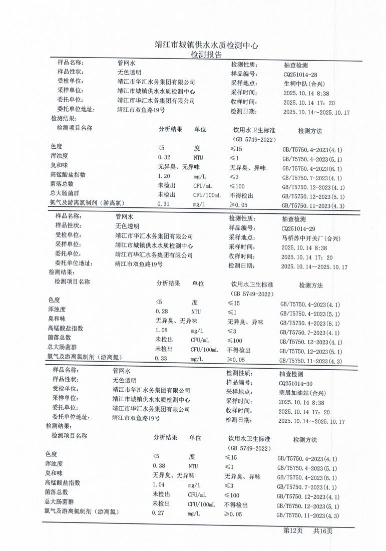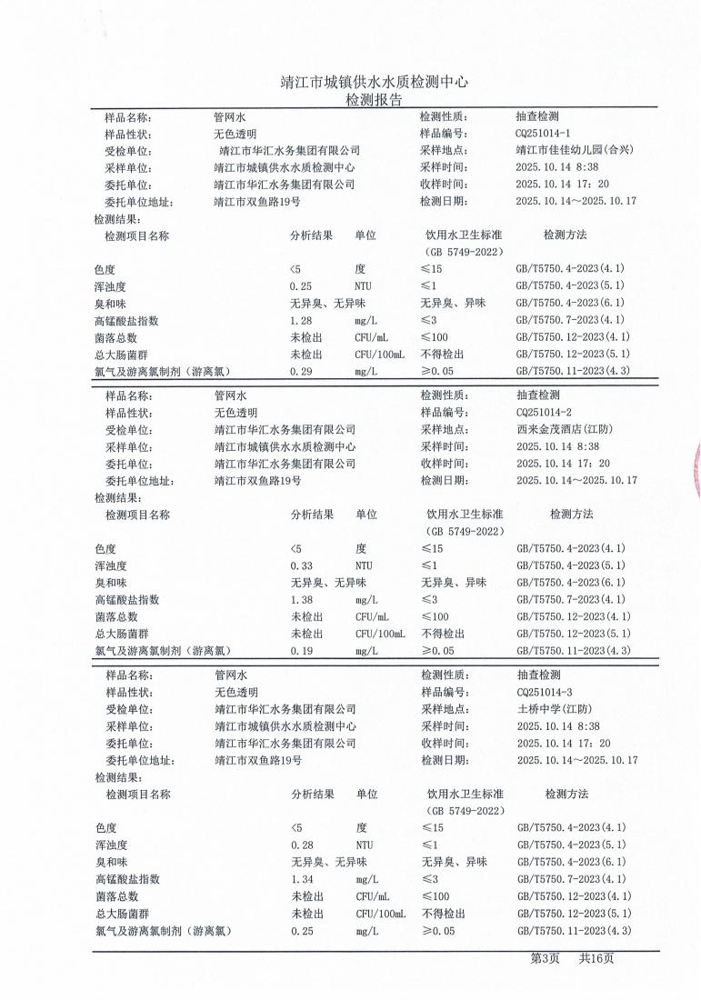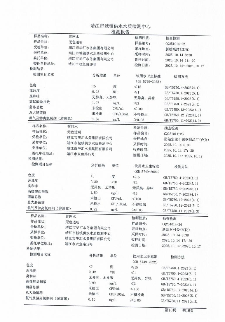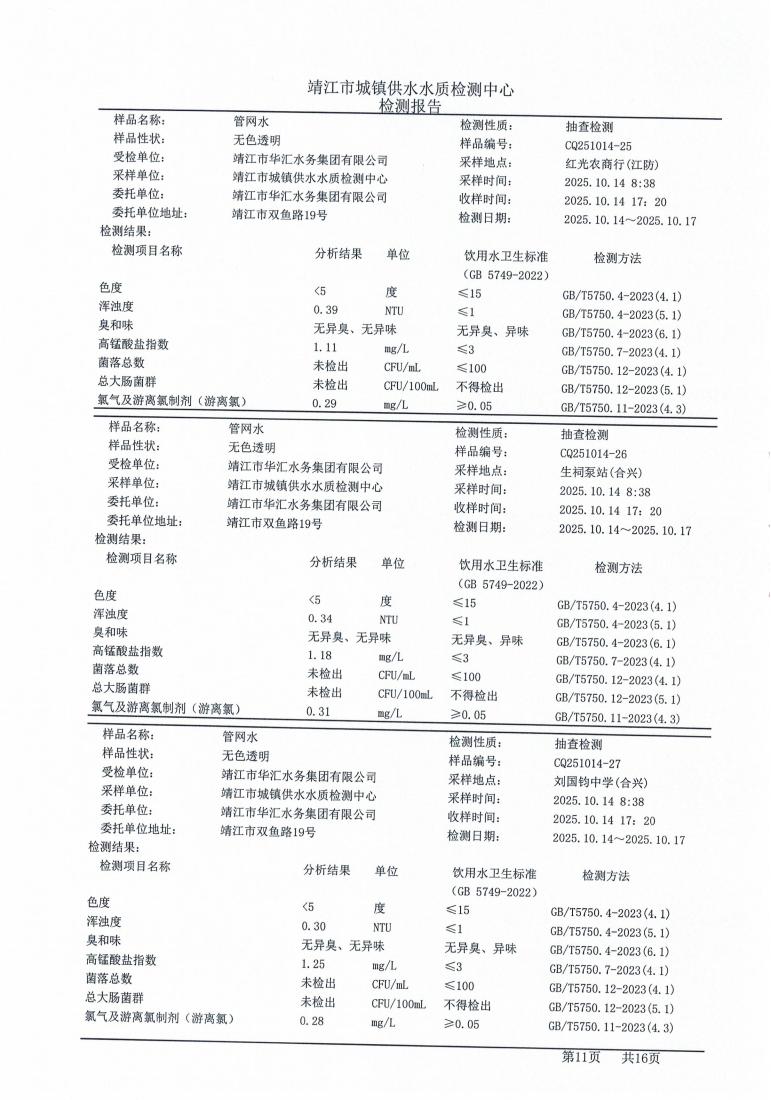 管網(wǎng)水檢測報(bào)告2025.10.14