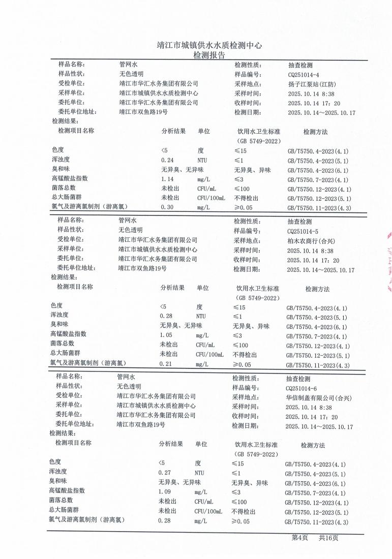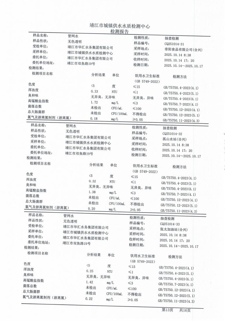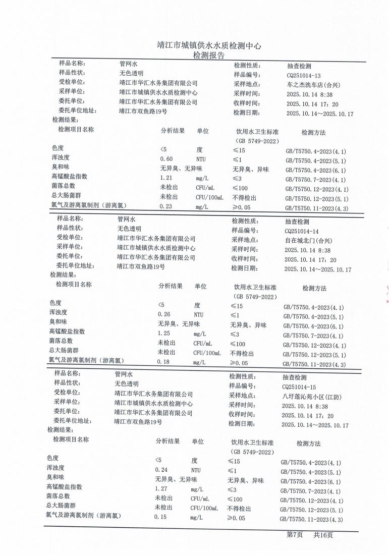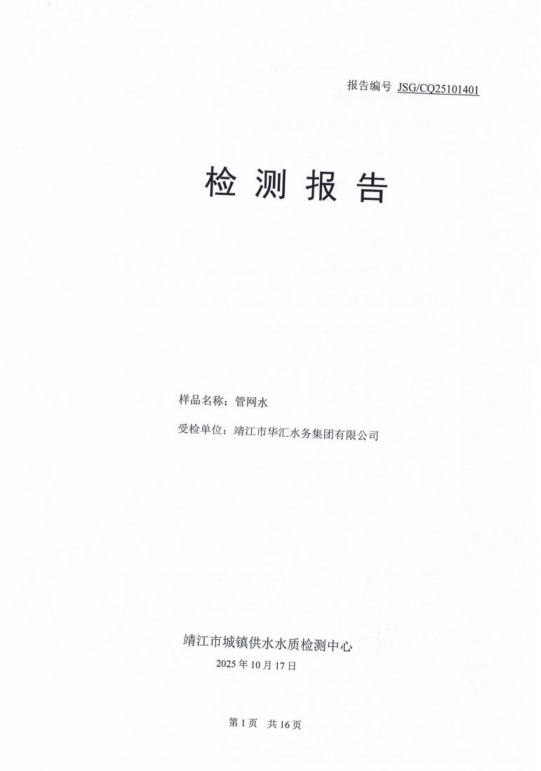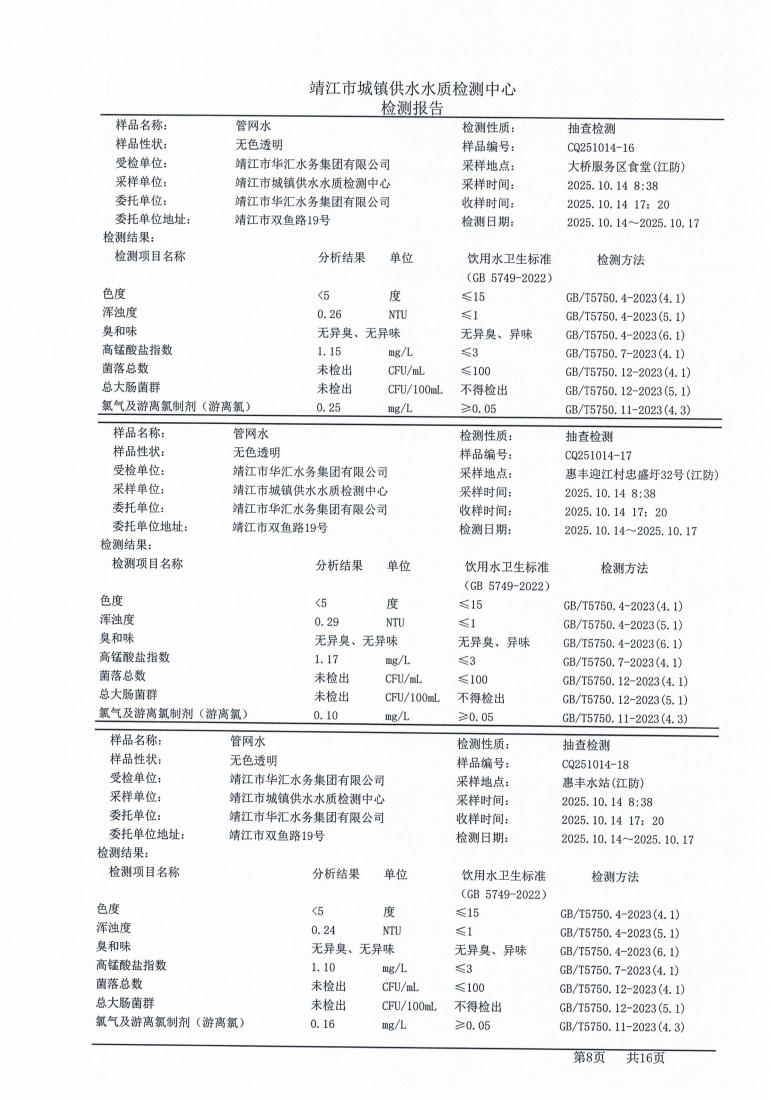 管網(wǎng)水檢測報(bào)告2025.10.14