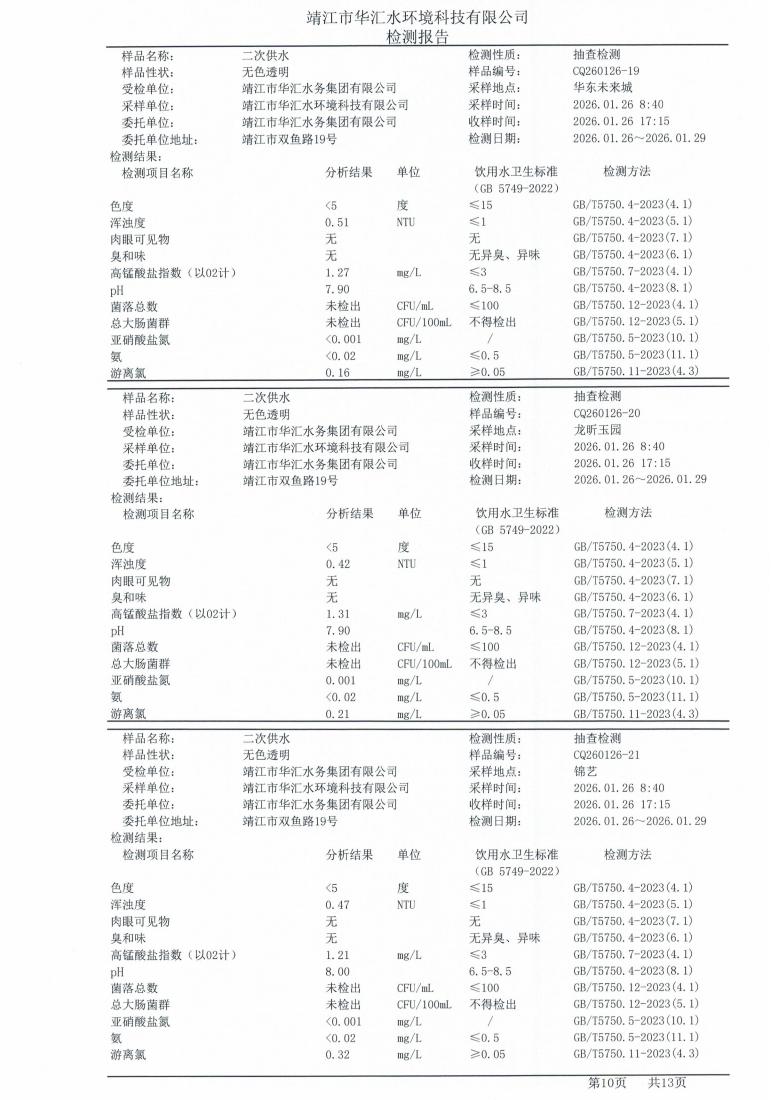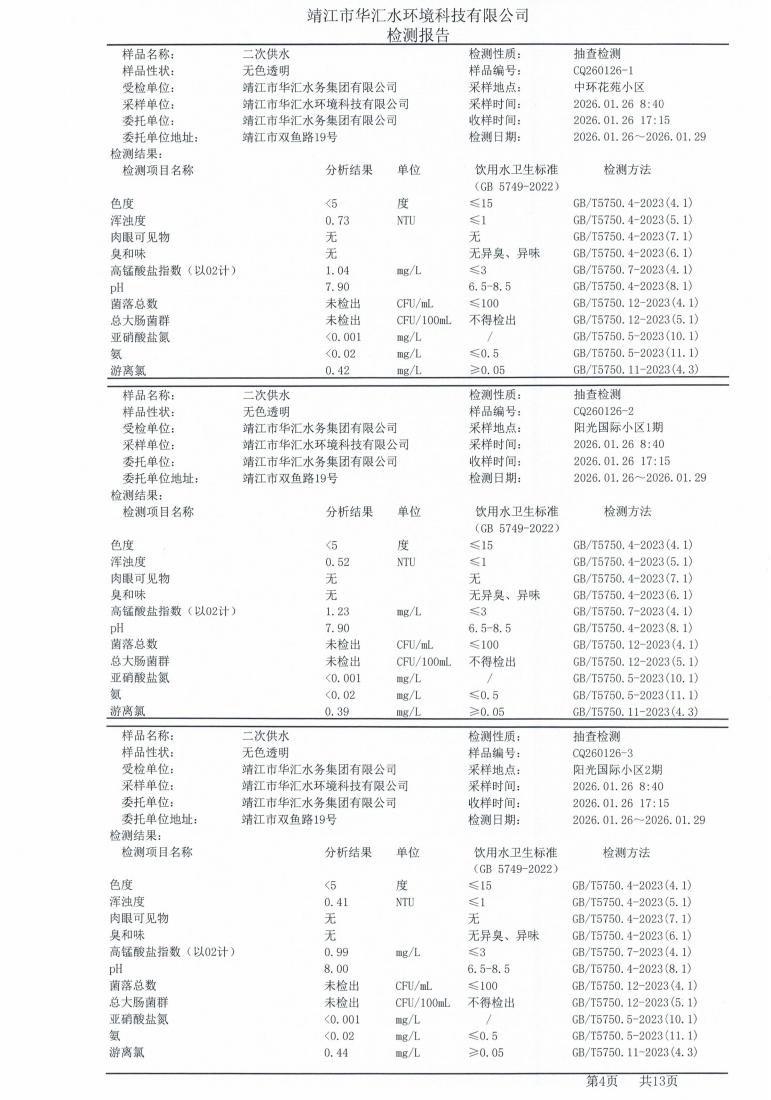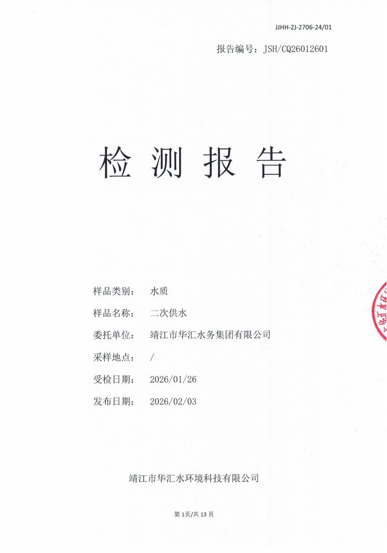 二次供水檢測(cè)報(bào)告2026.01.26