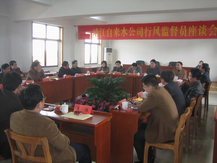 會(huì)上,公司經(jīng)理蔡永進(jìn)對(duì)各位行風(fēng)監(jiān)督員長期以來關(guān)心和支持我公司的工作,并接受邀請(qǐng)擔(dān)任義務(wù)行風(fēng)監(jiān)督員表示衷心感謝和誠摯的敬意,并向行風(fēng)監(jiān)督員們簡要介紹了公司供水和服務(wù)方面的基本情況。他說,近年來,公司投入500萬元對(duì)取水口進(jìn)行延伸改造,安裝了源水水質(zhì)在線監(jiān)測(cè)儀,對(duì)生產(chǎn)過程中的水質(zhì)及出水水質(zhì)實(shí)行即時(shí)檢測(cè),成立了生產(chǎn)調(diào)度中心,對(duì)整個(gè)生產(chǎn)過程進(jìn)行統(tǒng)一的指揮調(diào)度和監(jiān)控,確保做到水質(zhì)優(yōu)、水壓足;公司大力推進(jìn)區(qū)域供水工程,三年來已累計(jì)投入工程建設(shè)達(dá)1.5億元,建成一座日處理能力7.5萬噸的區(qū)域水廠,鋪設(shè)供水主管近百公里,現(xiàn)已形成貫通全市城鄉(xiāng)的供水網(wǎng)絡(luò),實(shí)現(xiàn)了城鄉(xiāng)供水一體化的目標(biāo);在供水服務(wù)工作中,公司堅(jiān)持把提升服務(wù)水平,完善服務(wù)形象作為一項(xiàng)常抓不懈的工作來抓。近年來,公司成立了服務(wù)大廳,實(shí)行服務(wù)項(xiàng)目一站式辦理一條龍服務(wù);設(shè)立服務(wù)熱線,實(shí)行24小時(shí)值班制度和搶修服務(wù)24小時(shí)待命制度;定期在《靖江日?qǐng)?bào)》公布水質(zhì)水壓情況,維修停水提前新聞媒體公告,并開通了企業(yè)網(wǎng)站;在內(nèi)部管理上,公司向社會(huì)公布了《社會(huì)服務(wù)承諾公開責(zé)任制》,并與各窗口部門和員工層層簽訂《責(zé)任書》,不斷完善各部門規(guī)范化管理的內(nèi)容程序,加大員工培訓(xùn)的力度,定期和不定期的采取內(nèi)部監(jiān)督和外部回訪相結(jié)合的辦法對(duì)窗口部門的行風(fēng)建設(shè)和社會(huì)服務(wù)承諾工作進(jìn)行考核和檢查,確保了行風(fēng)建設(shè)工作落到實(shí)處;同時(shí),公司堅(jiān)持以“服務(wù)無限、點(diǎn)滴關(guān)情”的服務(wù)理念為指導(dǎo),大力推行親情化、人性化服務(wù),打造具有供水特色的服務(wù)品牌,對(duì)全市用戶采取三個(gè)告知制度(用水量異常告知,水表動(dòng)態(tài)告知,水價(jià)變量告知),免費(fèi)聽漏檢測(cè)服務(wù)等一系列的特色服務(wù),公司的社會(huì)服務(wù)形象有了較大的改善,社會(huì)滿意度有了較大的提高。蔡永進(jìn)說,公司這次聘請(qǐng)義務(wù)行風(fēng)監(jiān)督員,既有來自各相關(guān)部門的代表,也有來自各行業(yè)的代表,各階層的代表,具有一定的代表性,其目的就是想以此為契機(jī),建立社會(huì)監(jiān)督網(wǎng)絡(luò),進(jìn)一步加強(qiáng)社會(huì)監(jiān)督,進(jìn)一步拓寬與社會(huì)各方面的溝通渠道。公司誠懇希望監(jiān)督員們能多提寶貴意見和建議,無論是平時(shí)的工作中感受到的,還是在與群眾的接觸中聽到或了解的,請(qǐng)大家都能毫無保留的及時(shí)批評(píng)指正。我們也將定期與各位監(jiān)督員聯(lián)系和回訪,,使行風(fēng)監(jiān)督常態(tài)化和制度化,深入挖掘公司在工作中尚未發(fā)現(xiàn)或被忽視的問題,取得實(shí)實(shí)在在的效果,推動(dòng)我公司各項(xiàng)工作再上新的臺(tái)階。