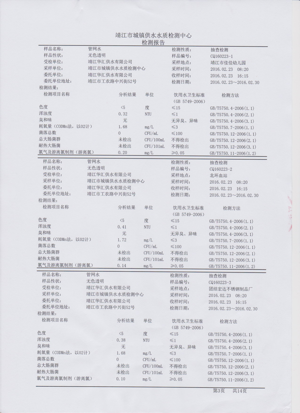 管網(wǎng)水檢測報告