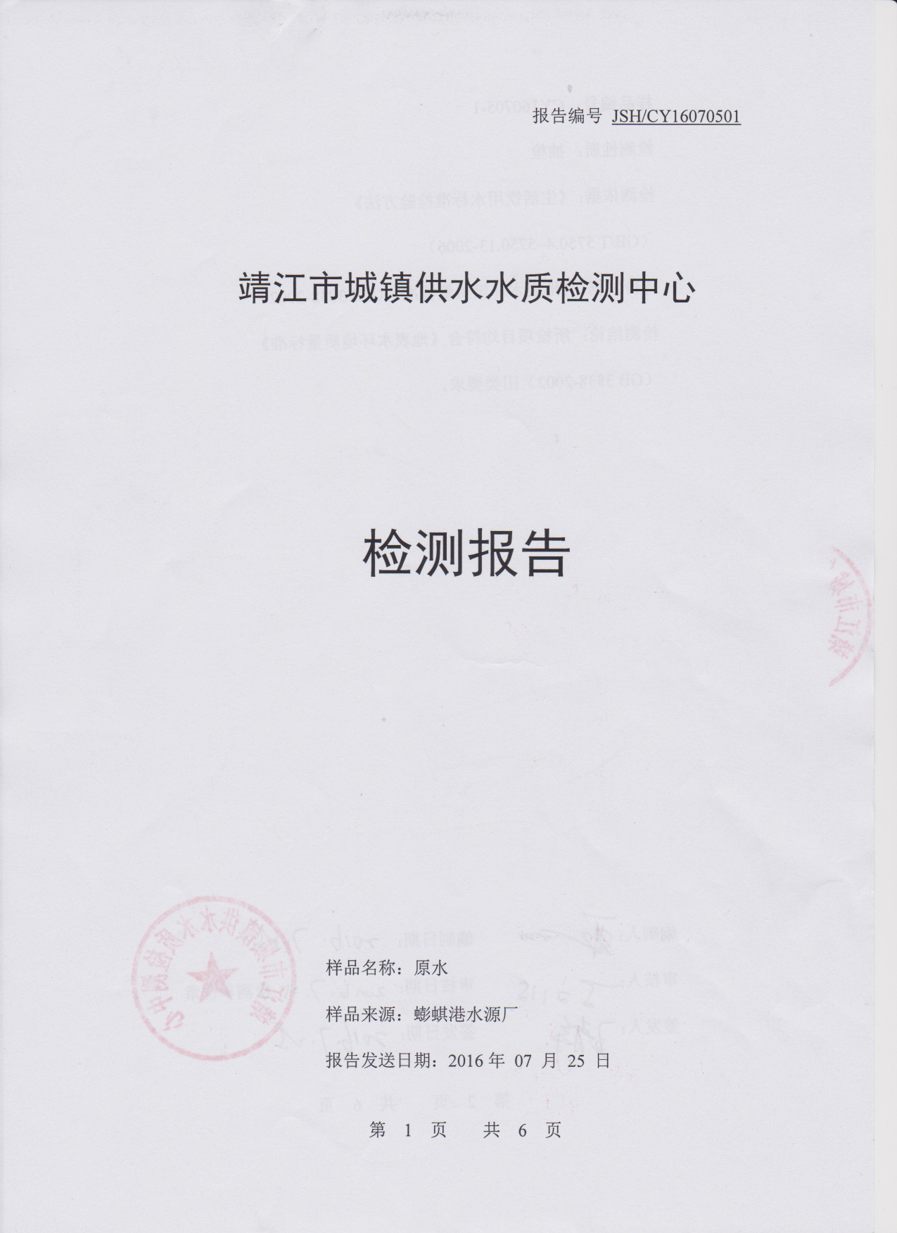 源水水質(zhì)檢測(cè)報(bào)告2016.07.05