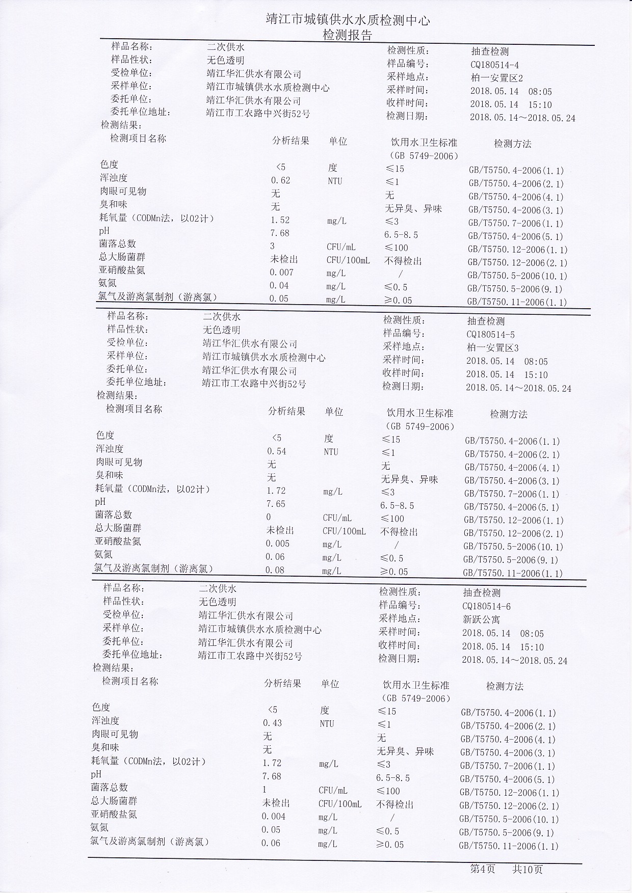 二次供水檢測(cè)報(bào)告2018.05.14