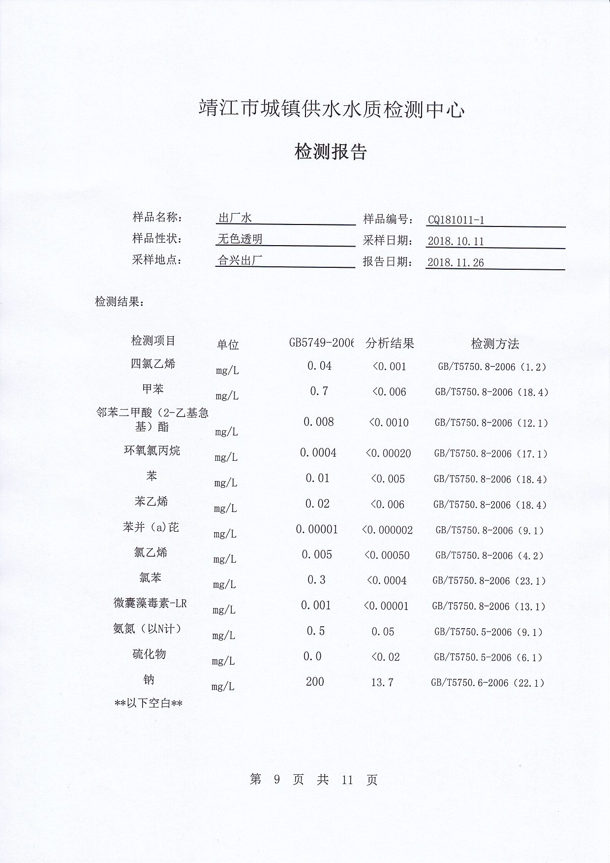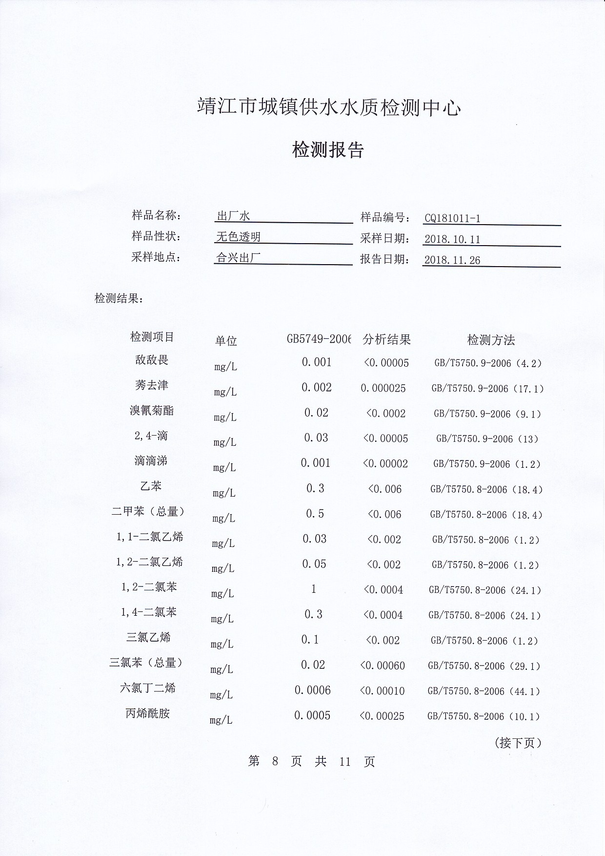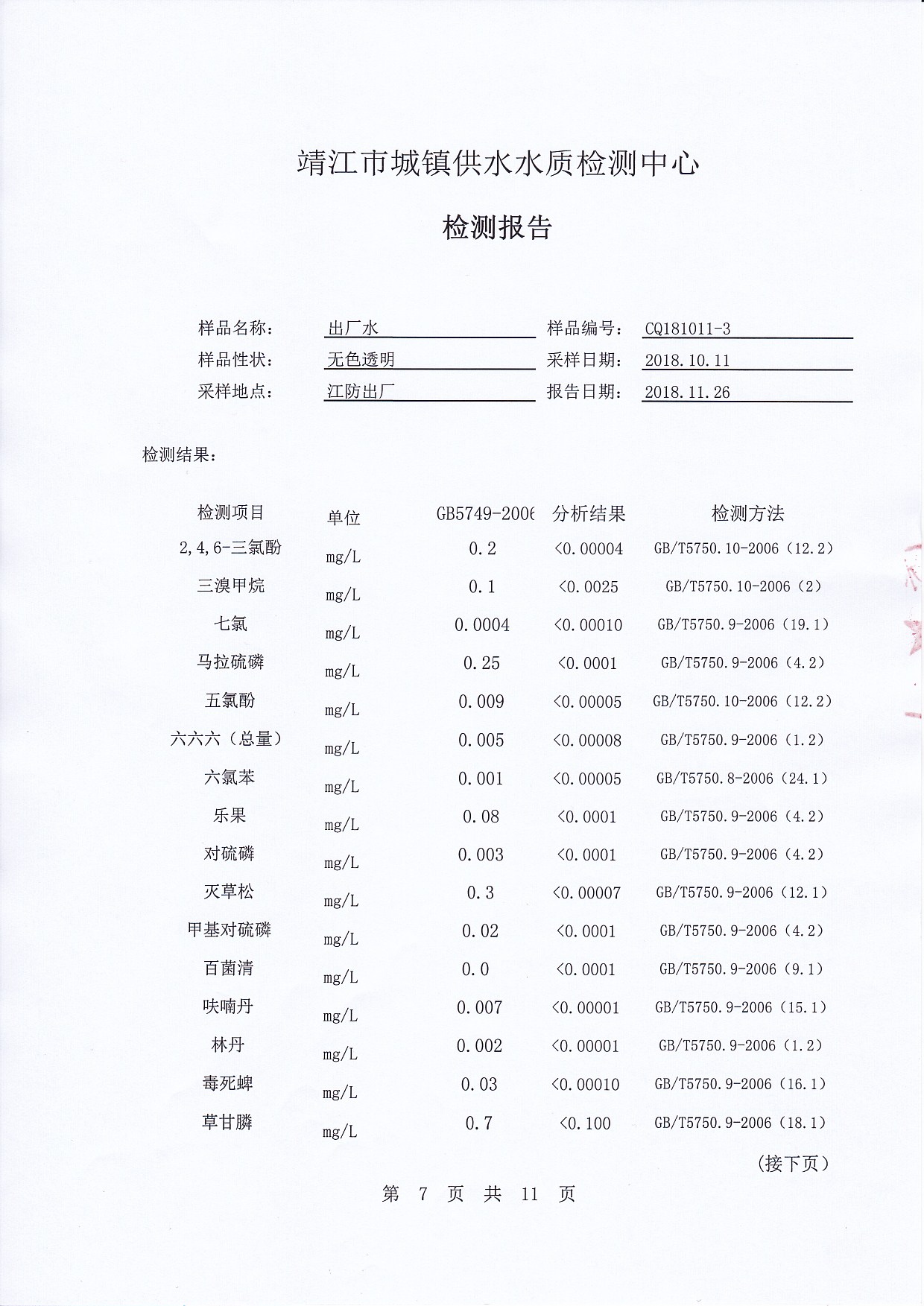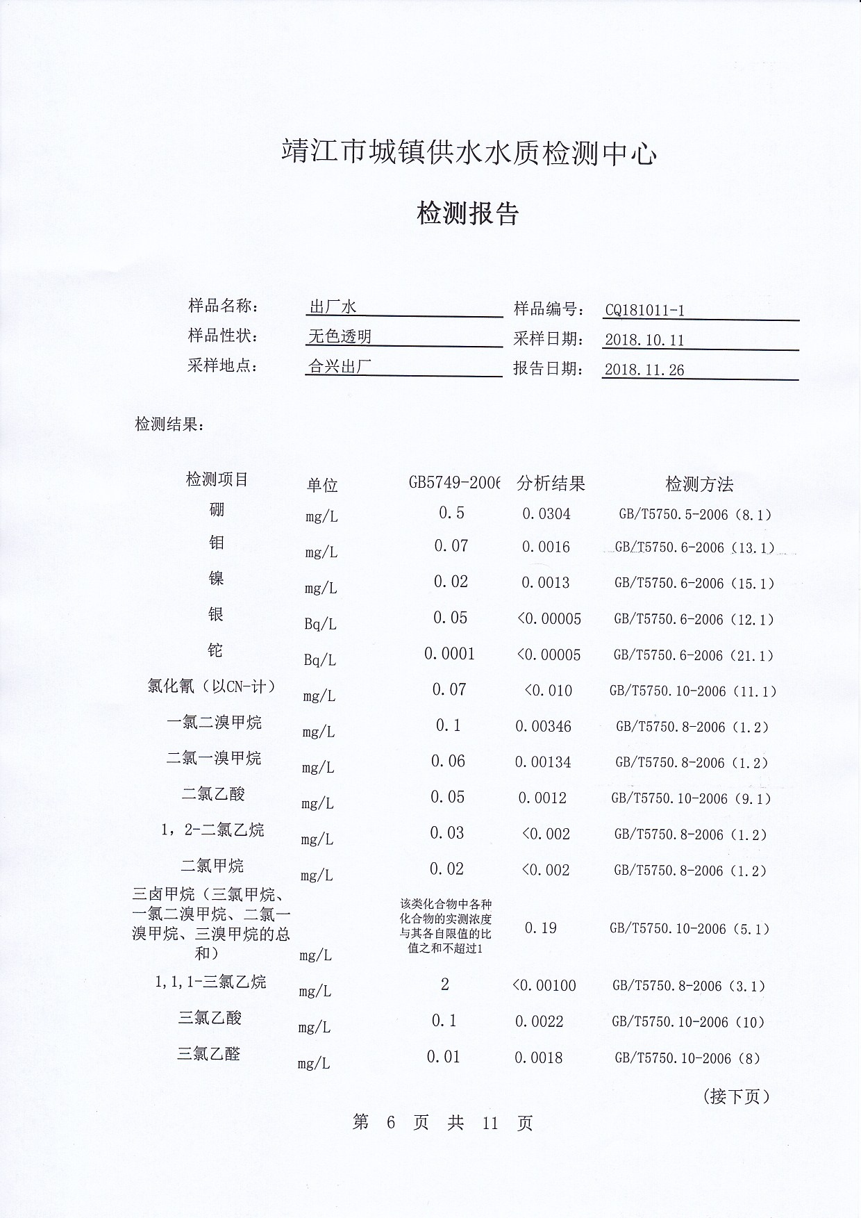 2018年下半年非常規(guī)水質(zhì)檢測報告