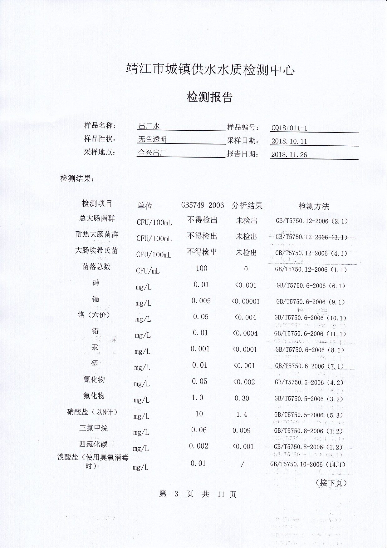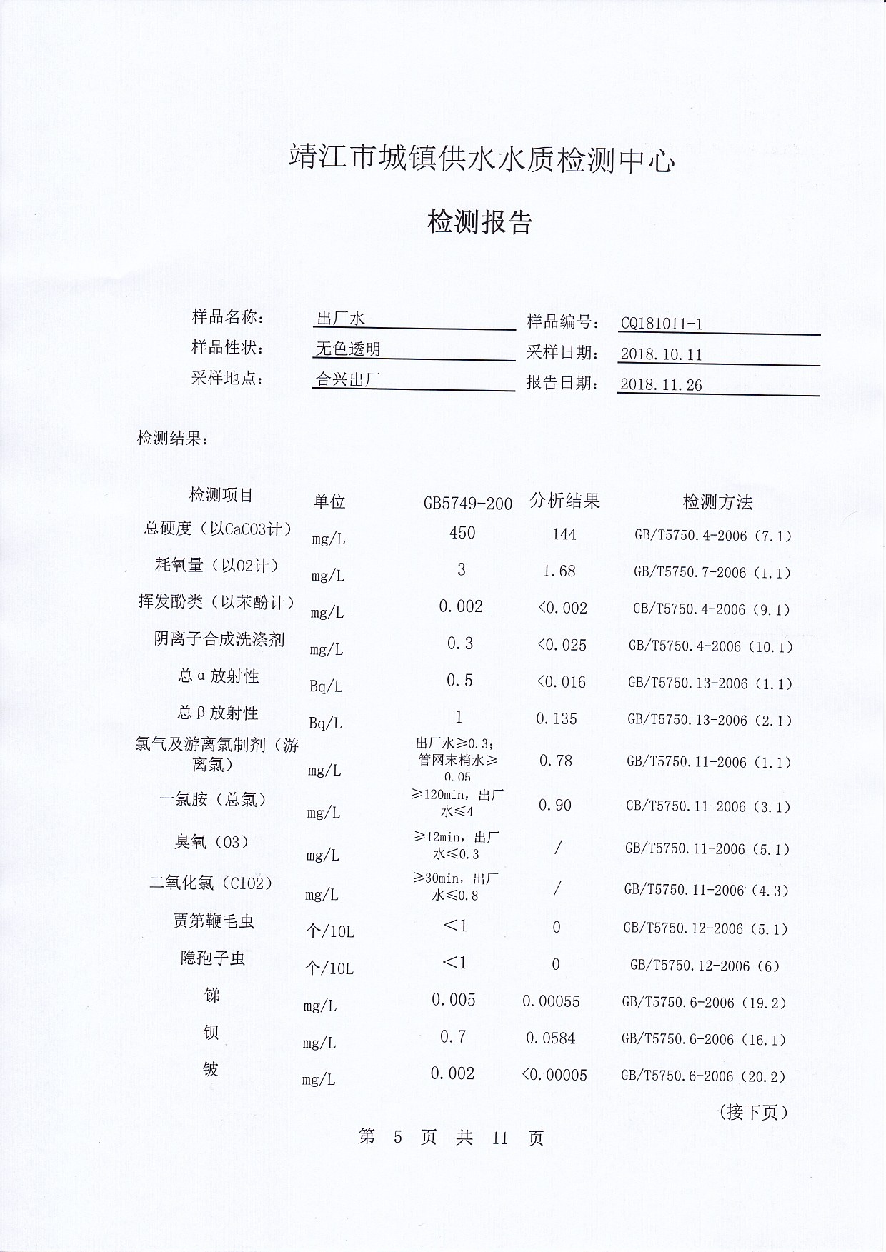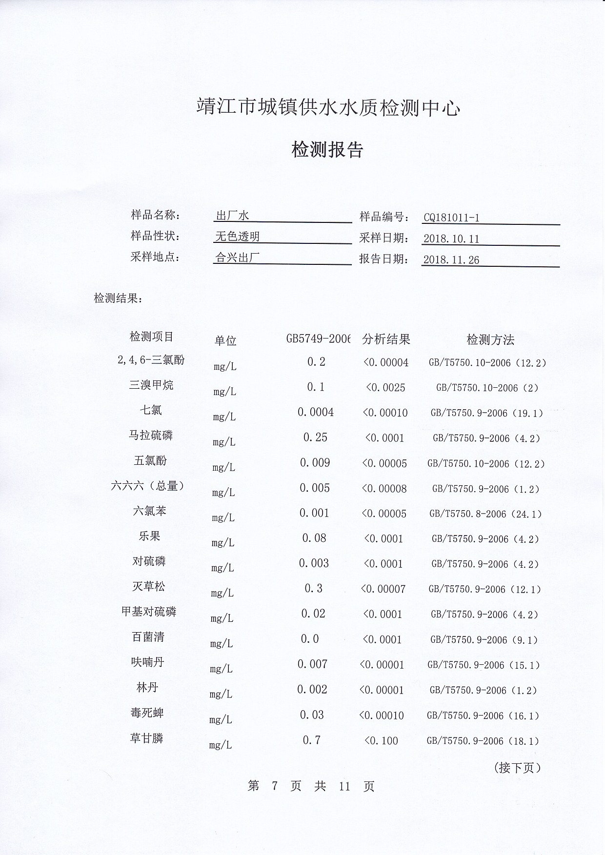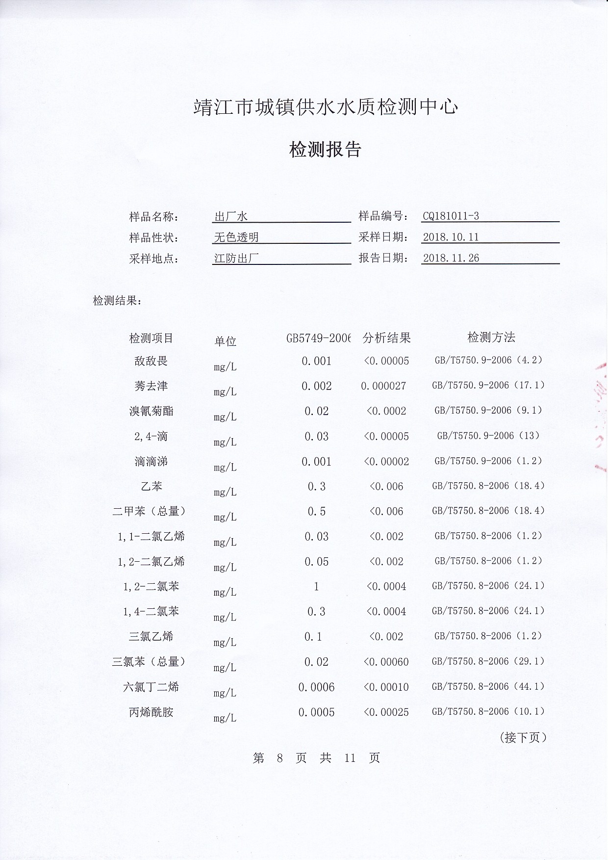 2018年下半年非常規(guī)水質(zhì)檢測報告
