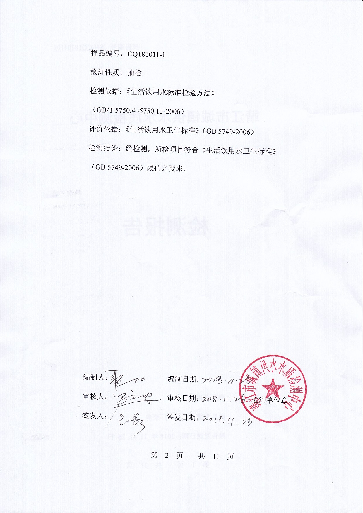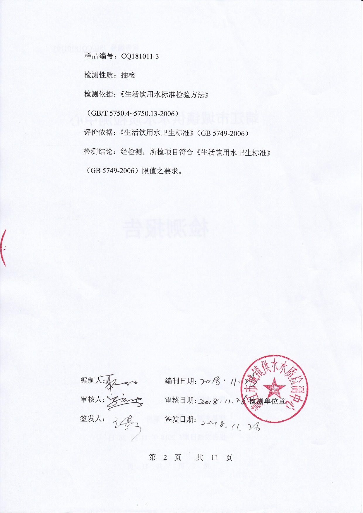 信息來源:華匯供水 ‖ 發(fā)稿作者:水質(zhì)檢驗部 ‖ 發(fā)布時間:2018年11月26日 ‖ 查看7942次 ‖