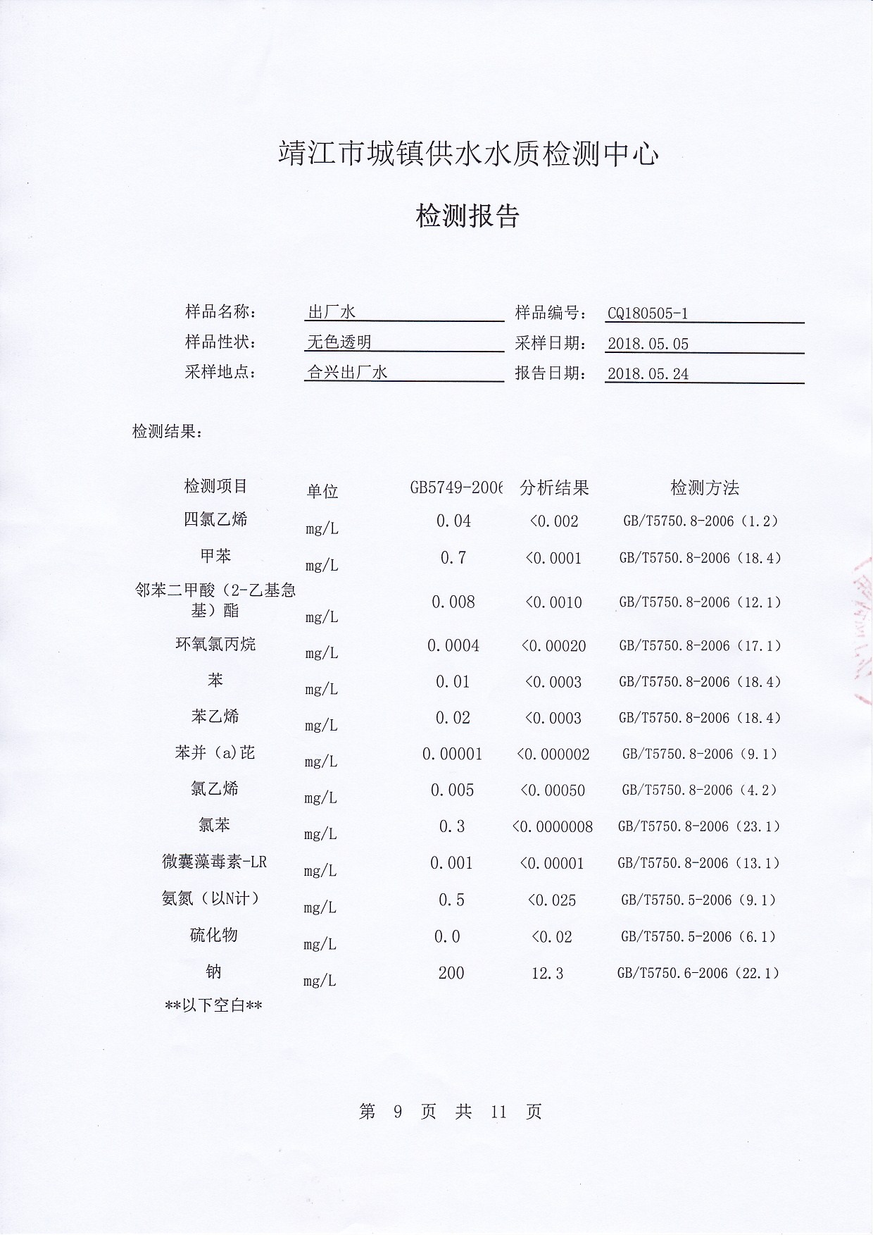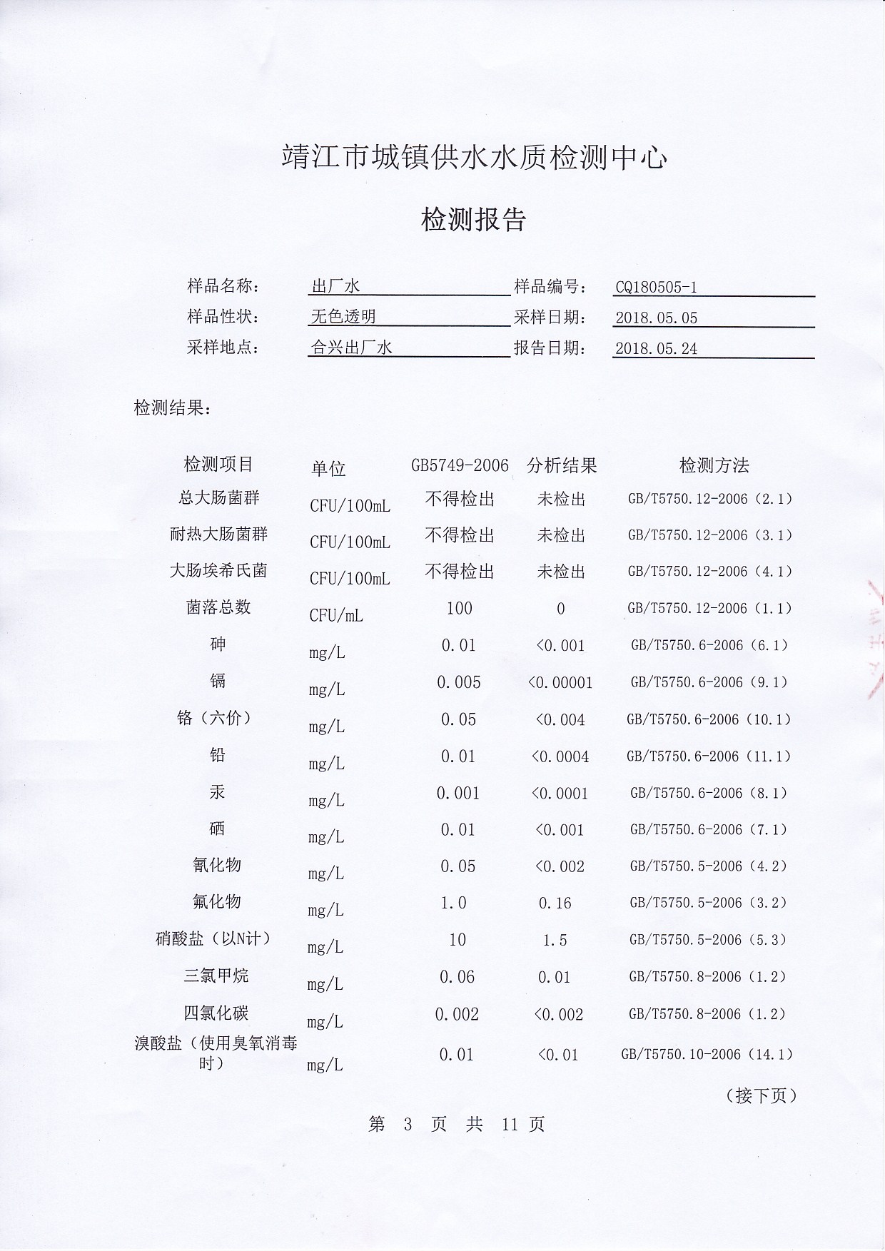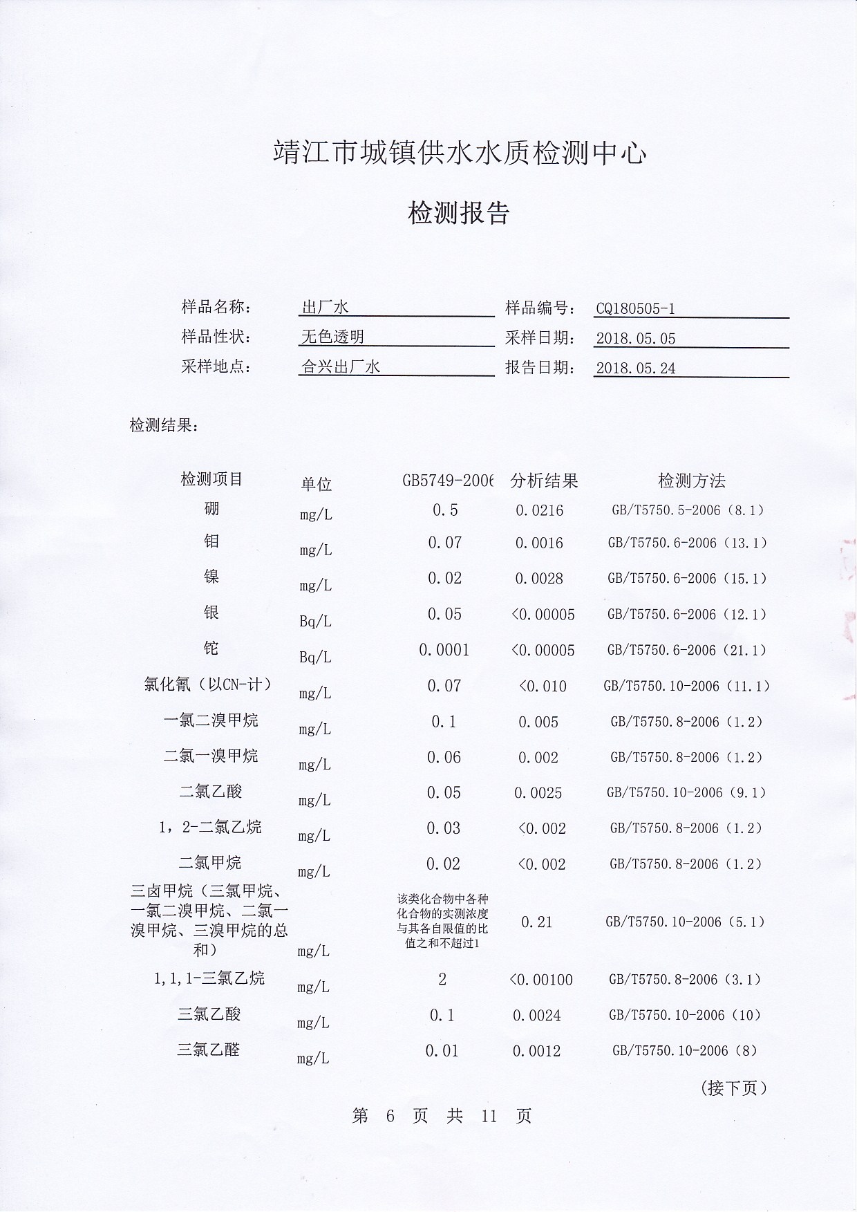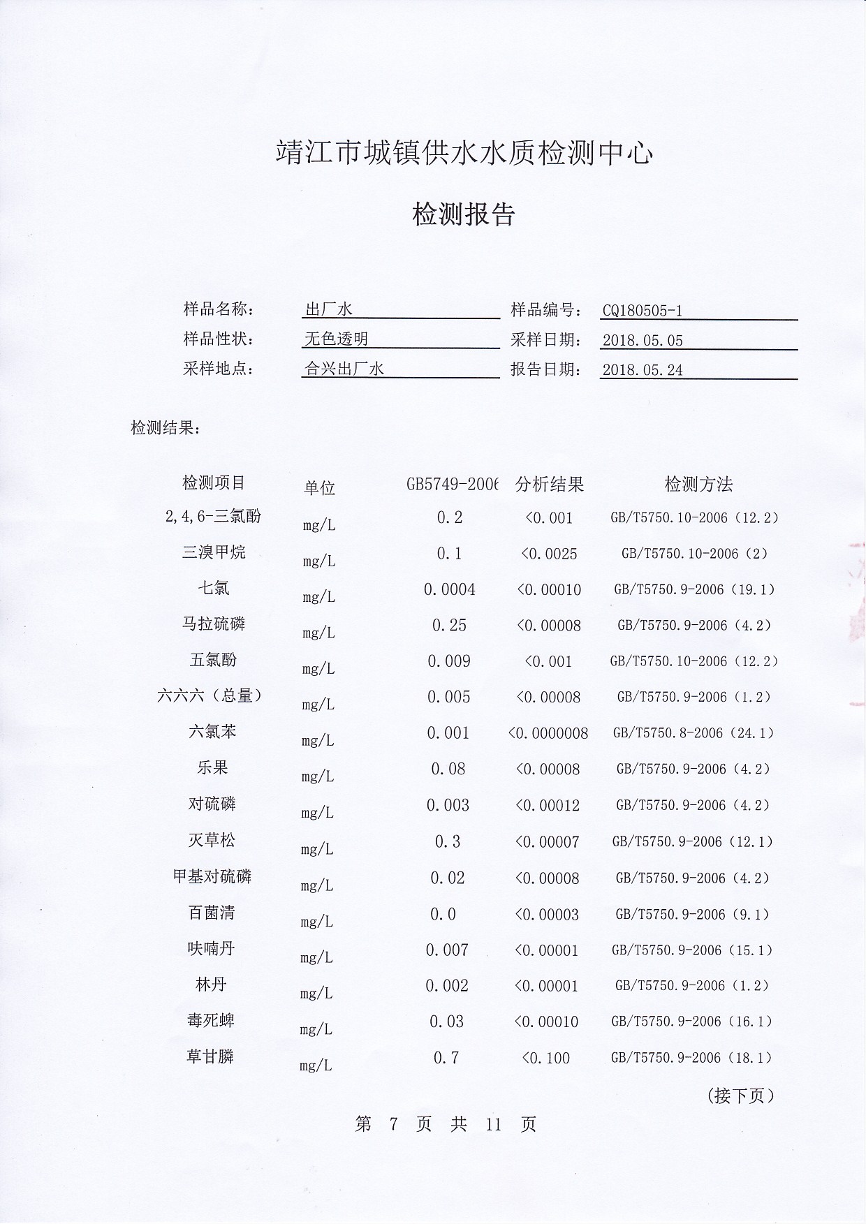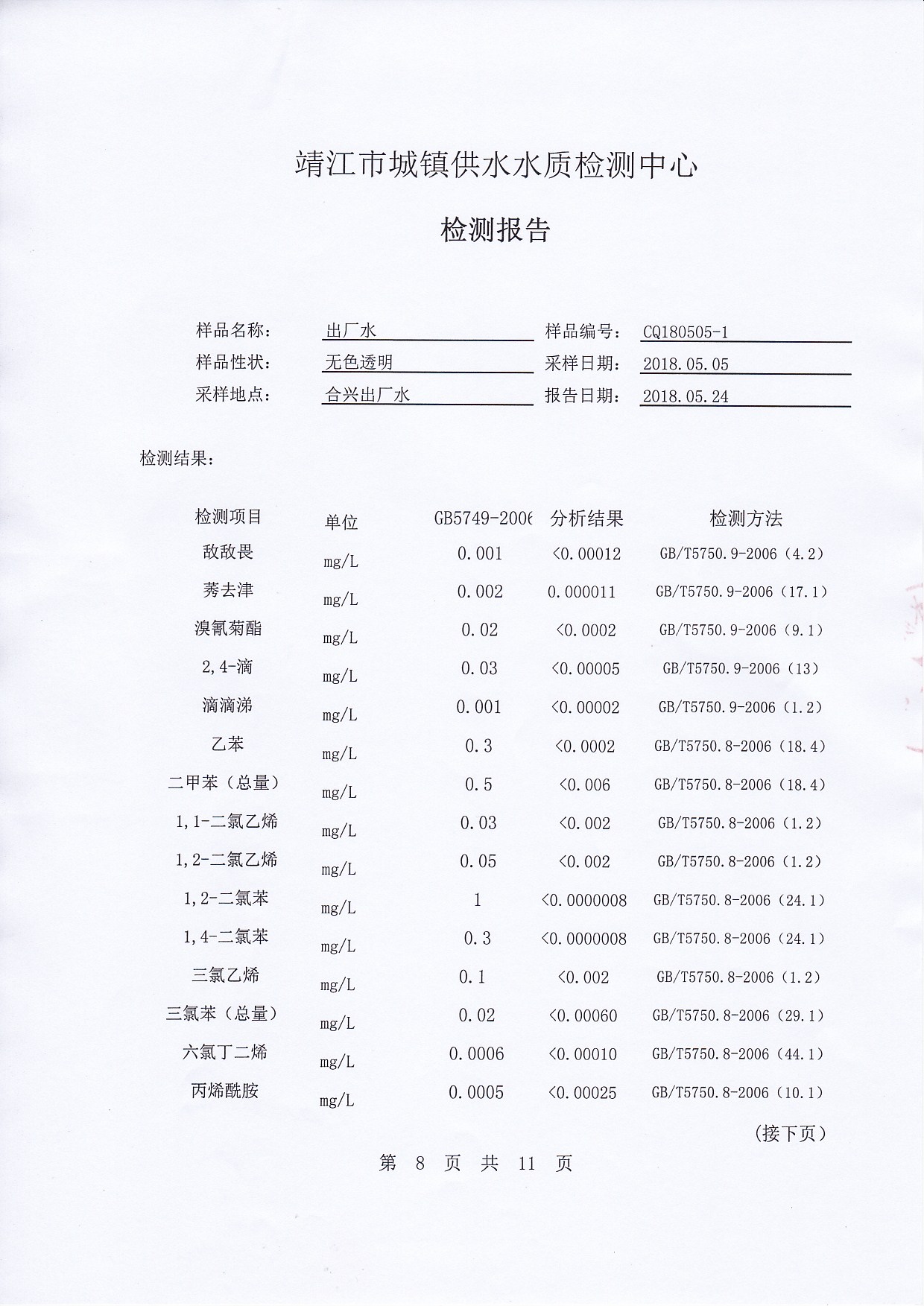 2018年下半年非常規(guī)水質(zhì)檢測報告