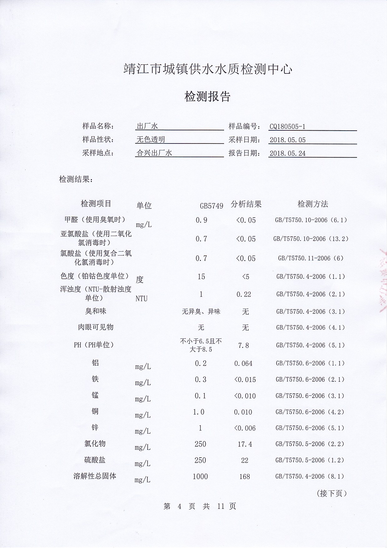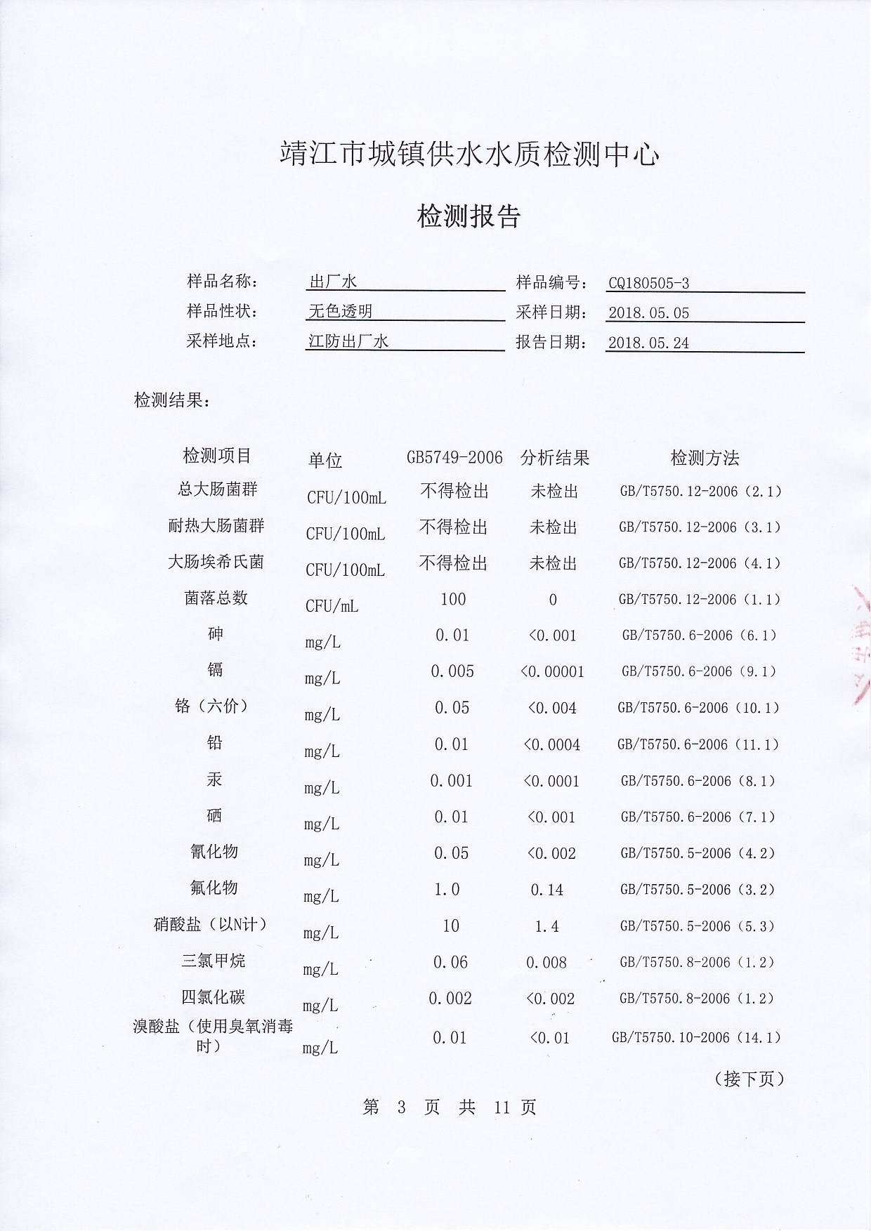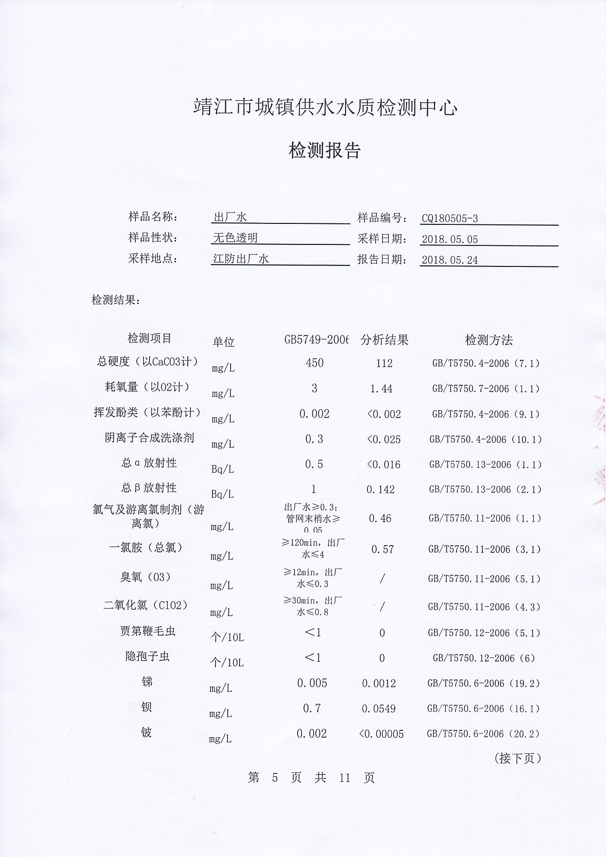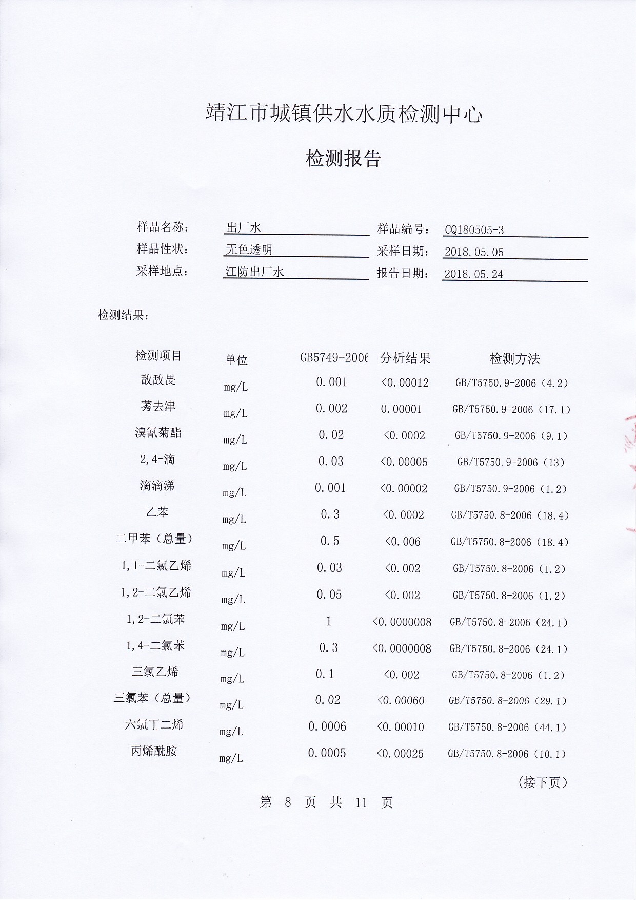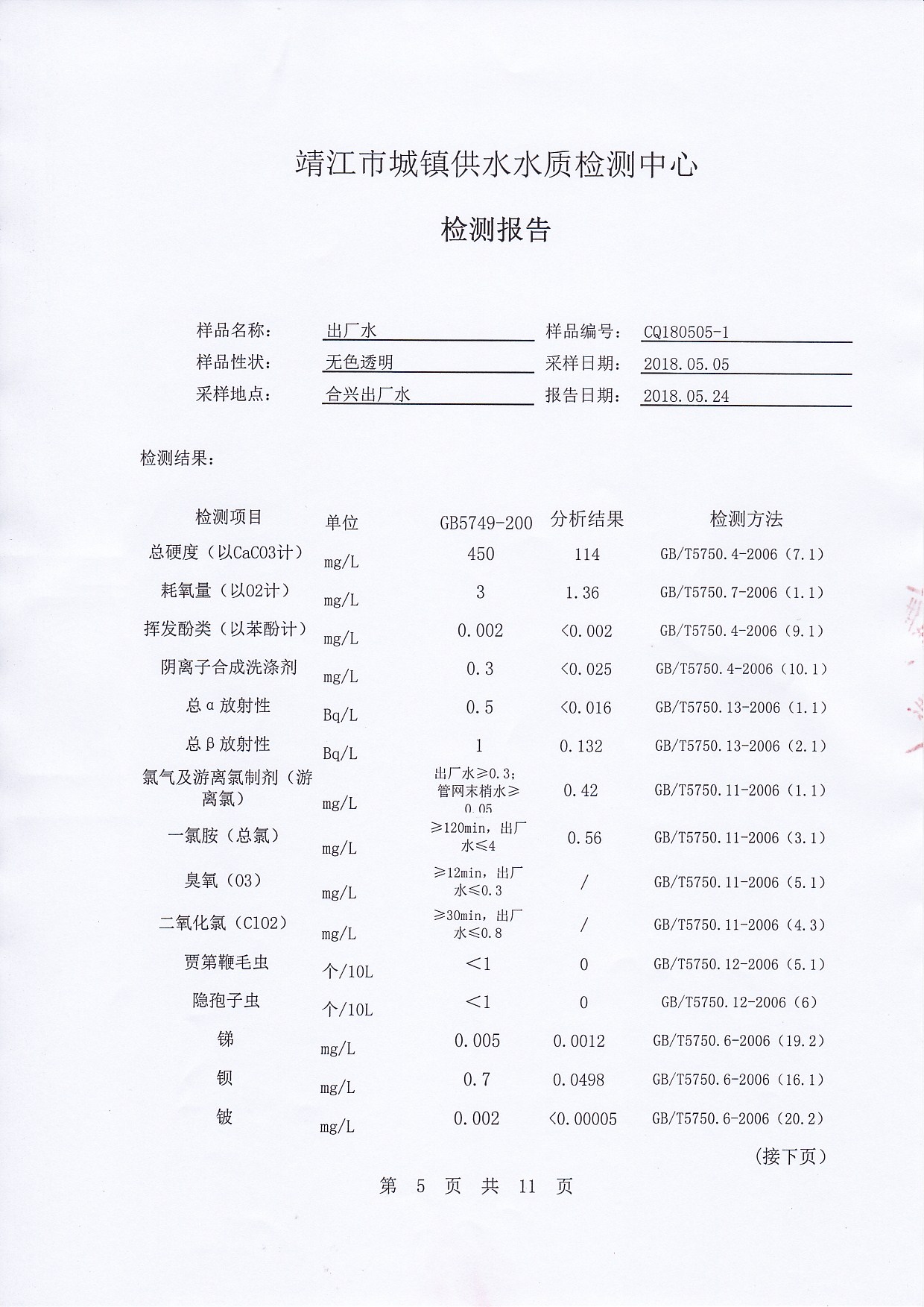 2018年下半年非常規(guī)水質(zhì)檢測報告