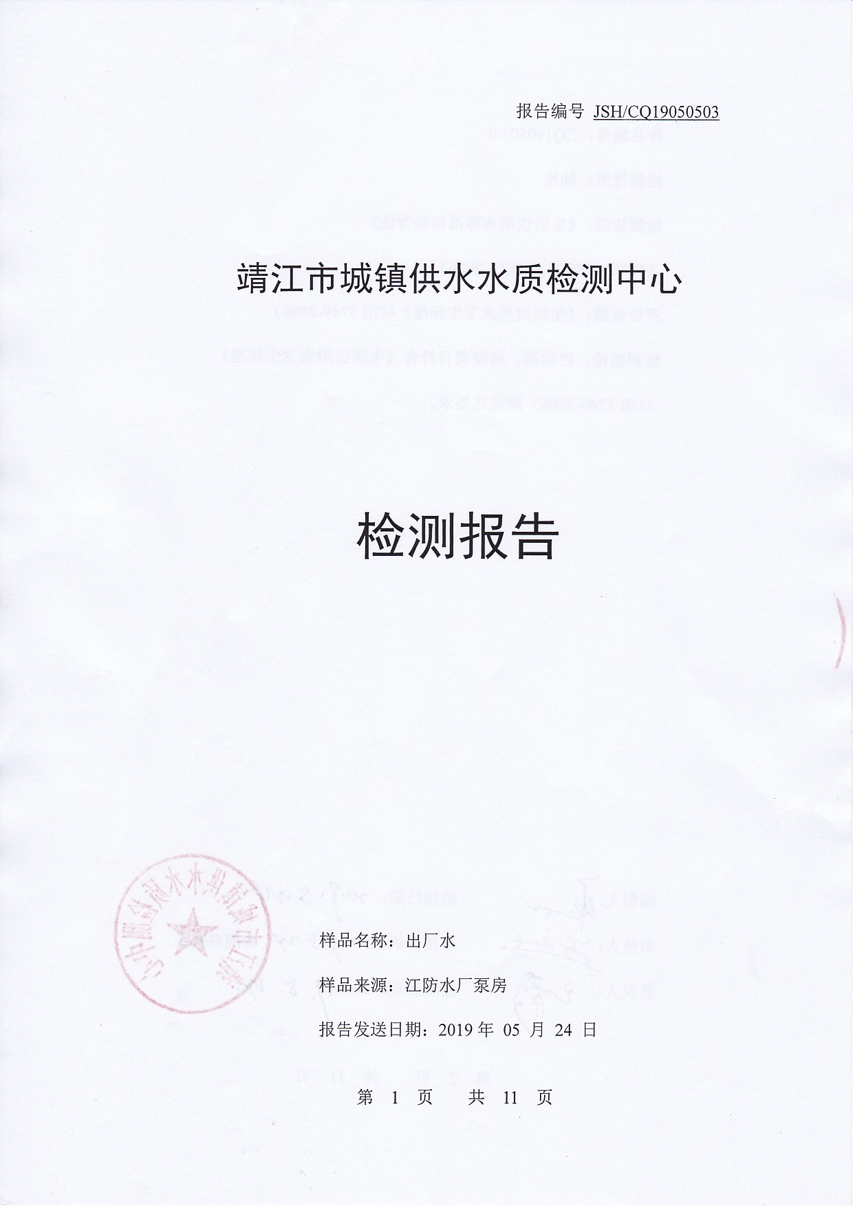 2019年上半年非常規(guī)水質(zhì)檢測報告