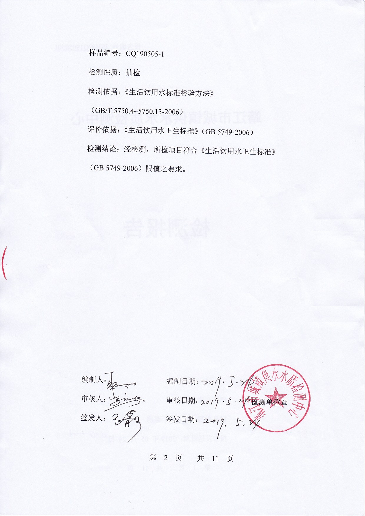信息來源:華匯供水 ‖ 發(fā)稿作者:水質(zhì)檢驗部 ‖ 發(fā)布時間:2019年5月24日 ‖ 查看7846次 ‖