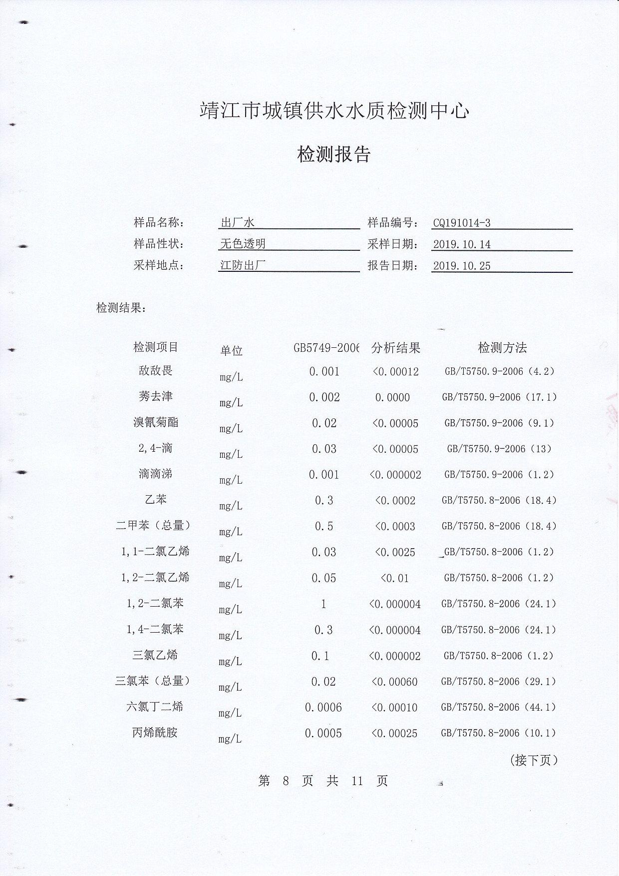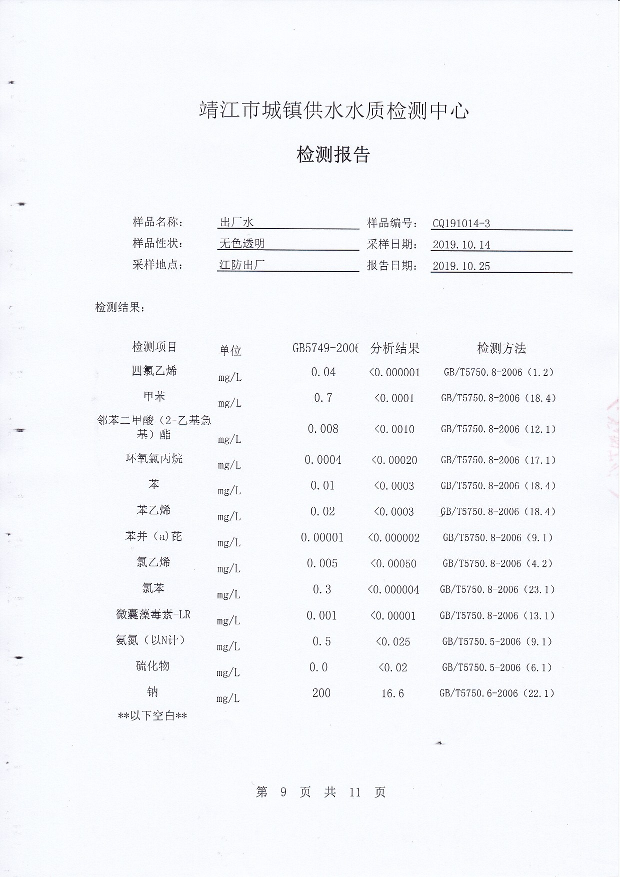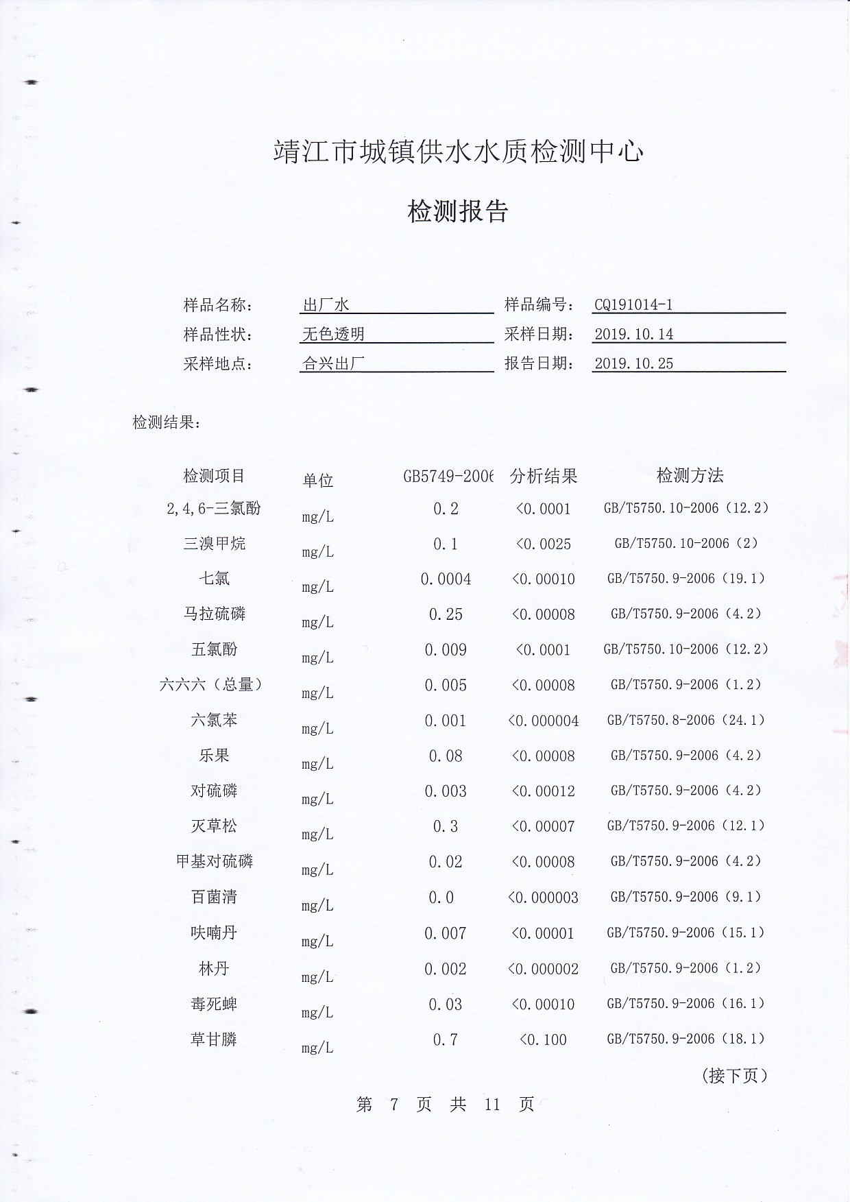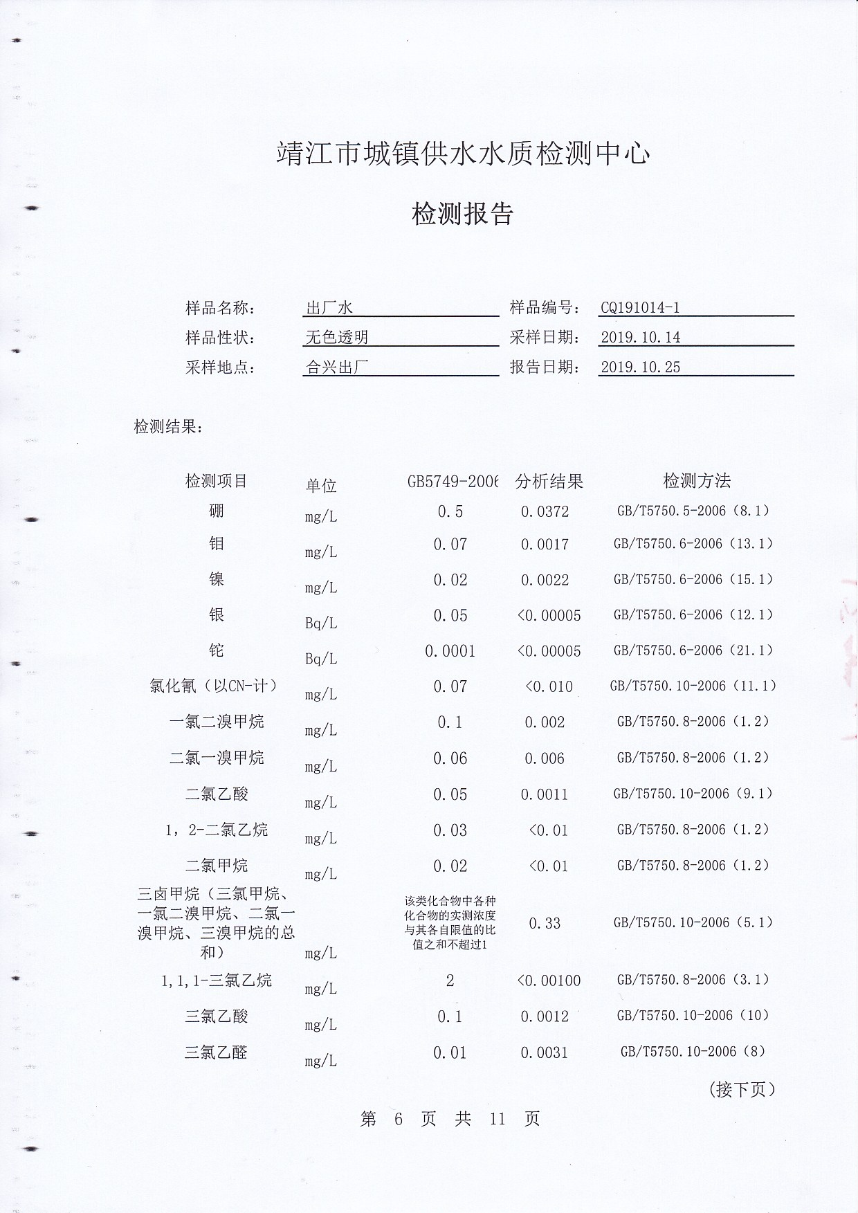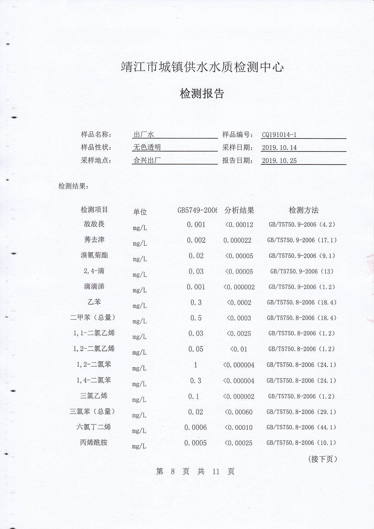 2019年下半年非常規(guī)水質(zhì)檢測(cè)報(bào)告