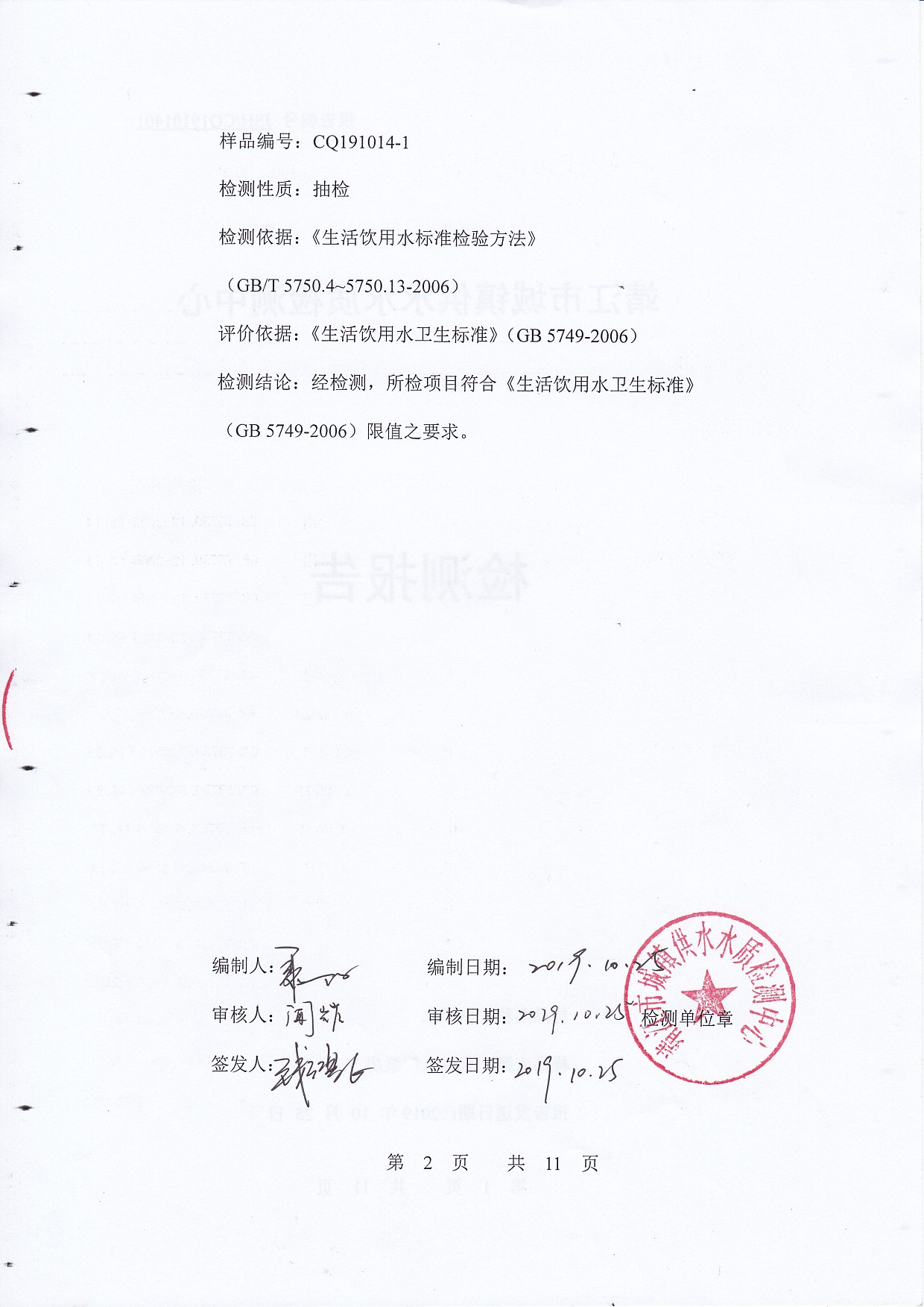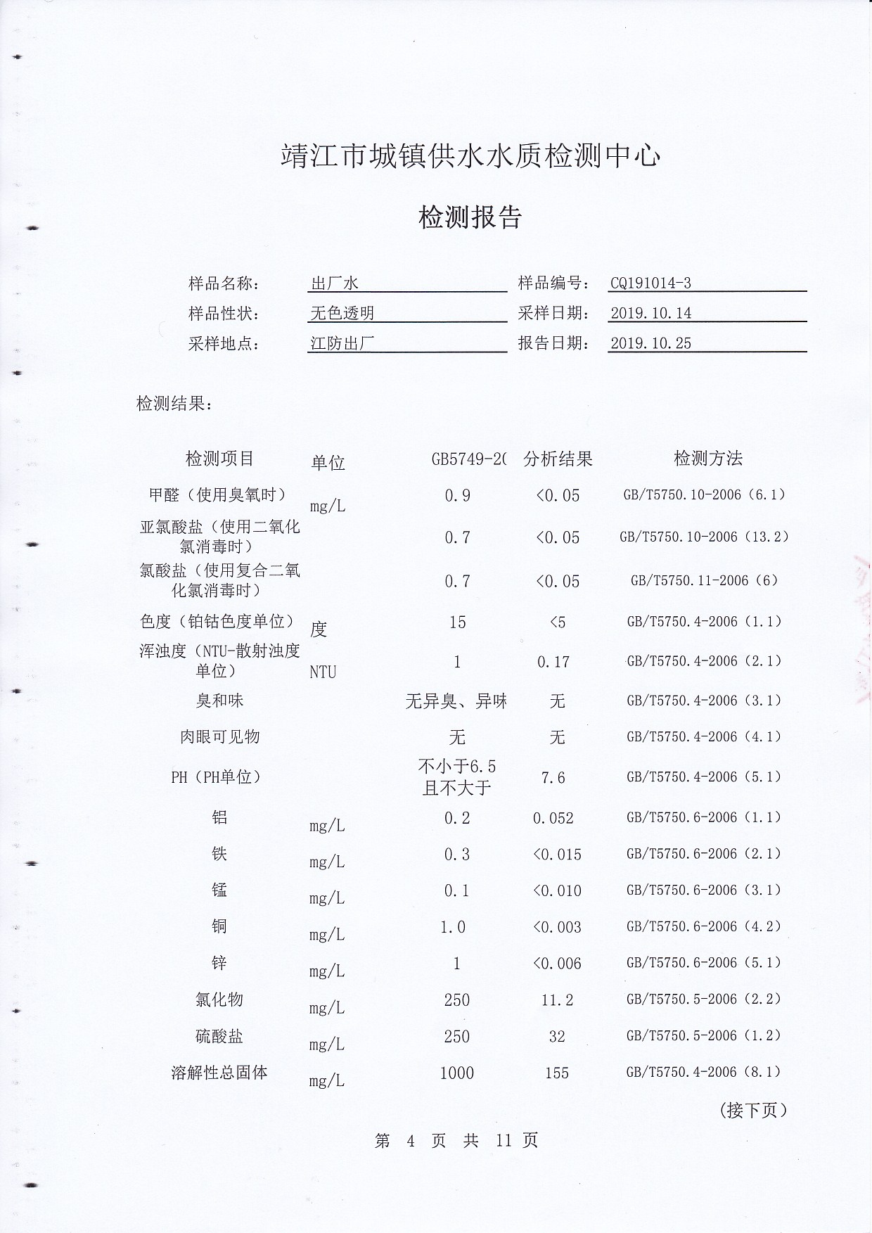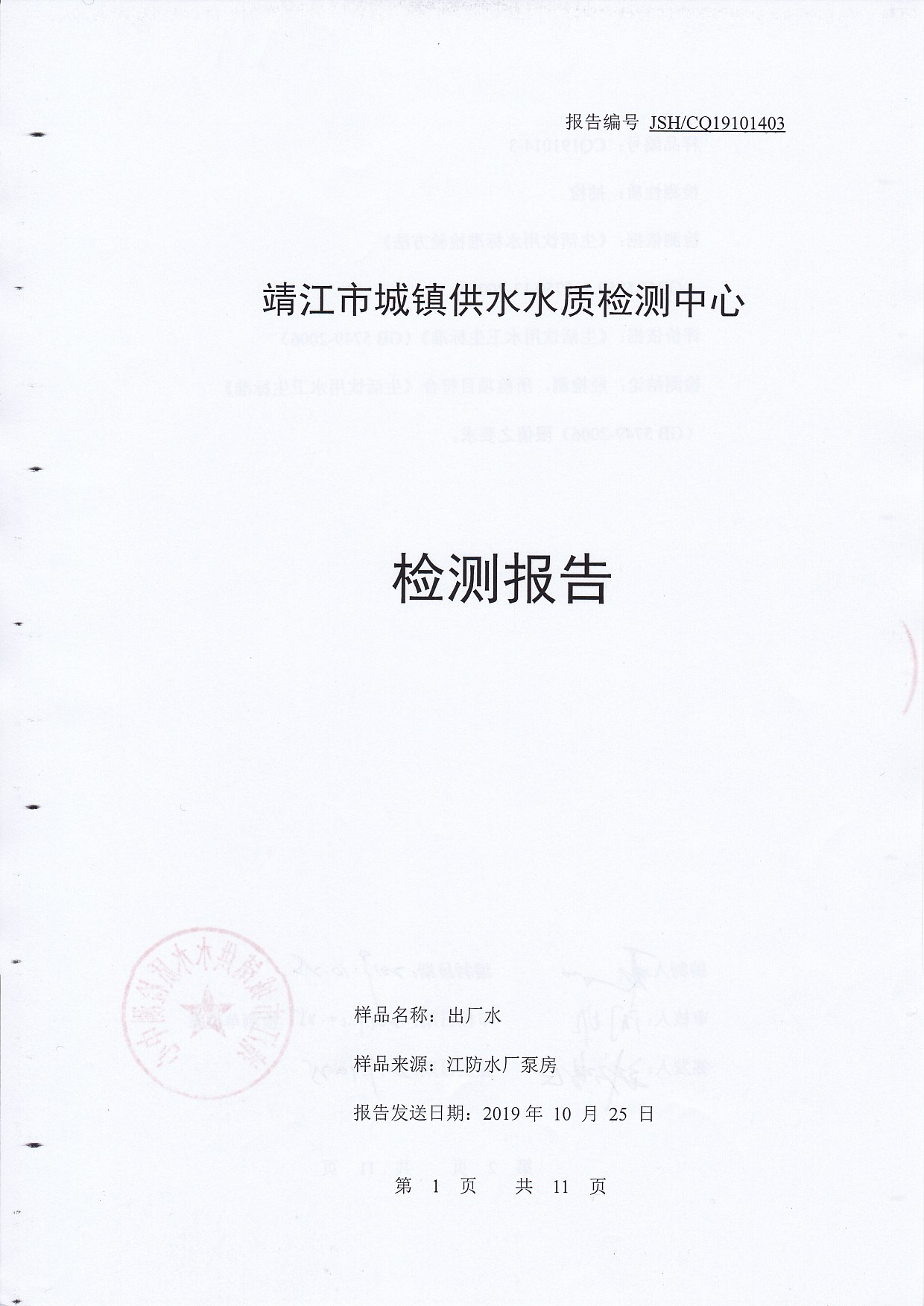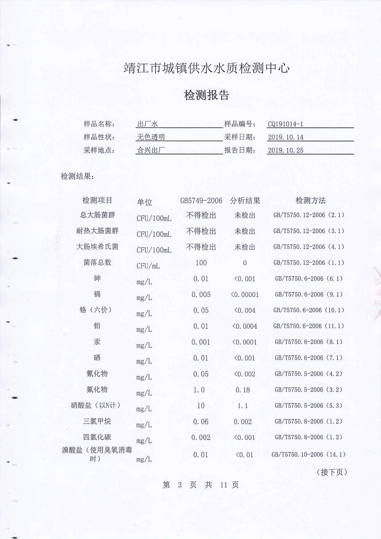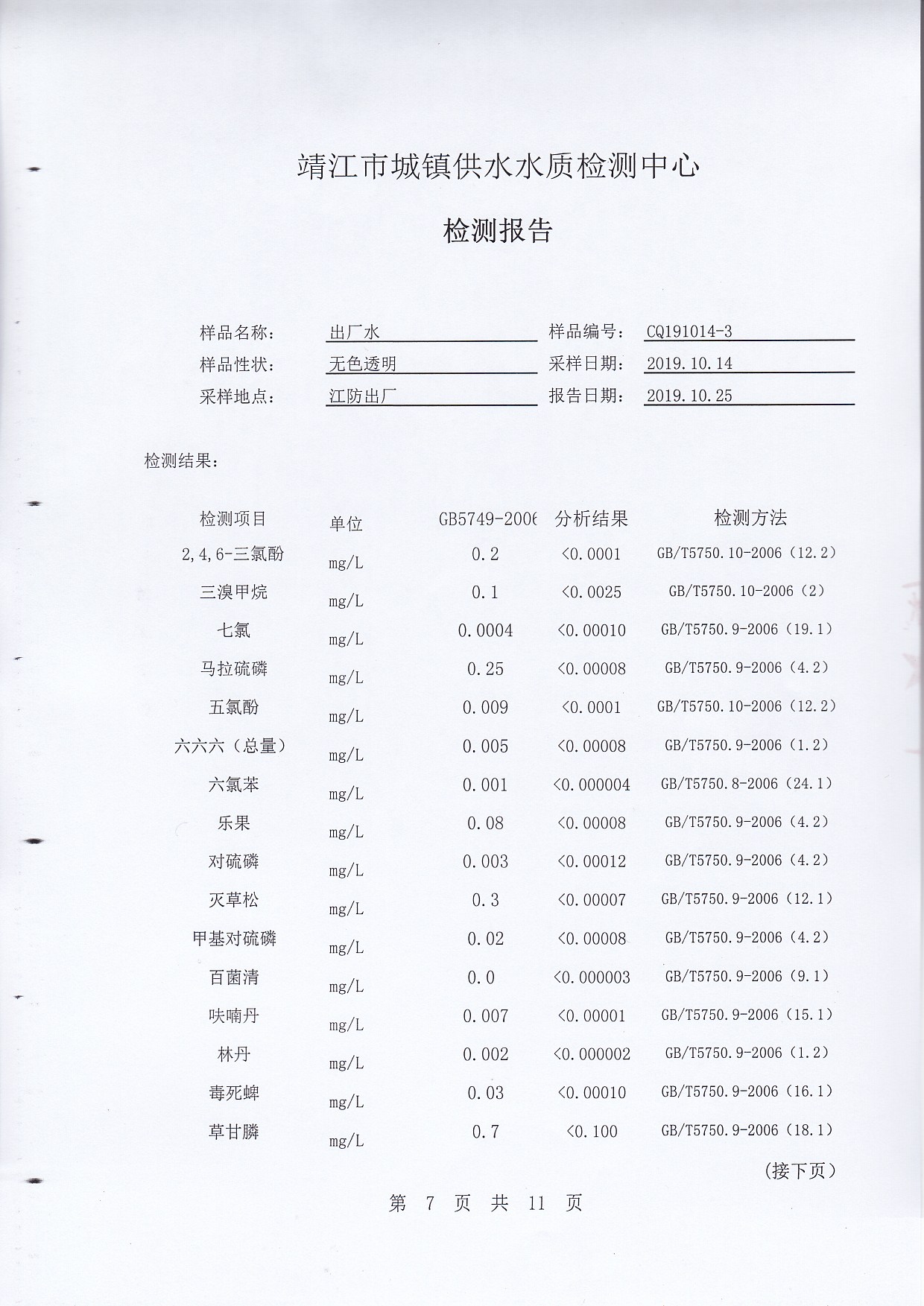 2019年下半年非常規(guī)水質(zhì)檢測(cè)報(bào)告