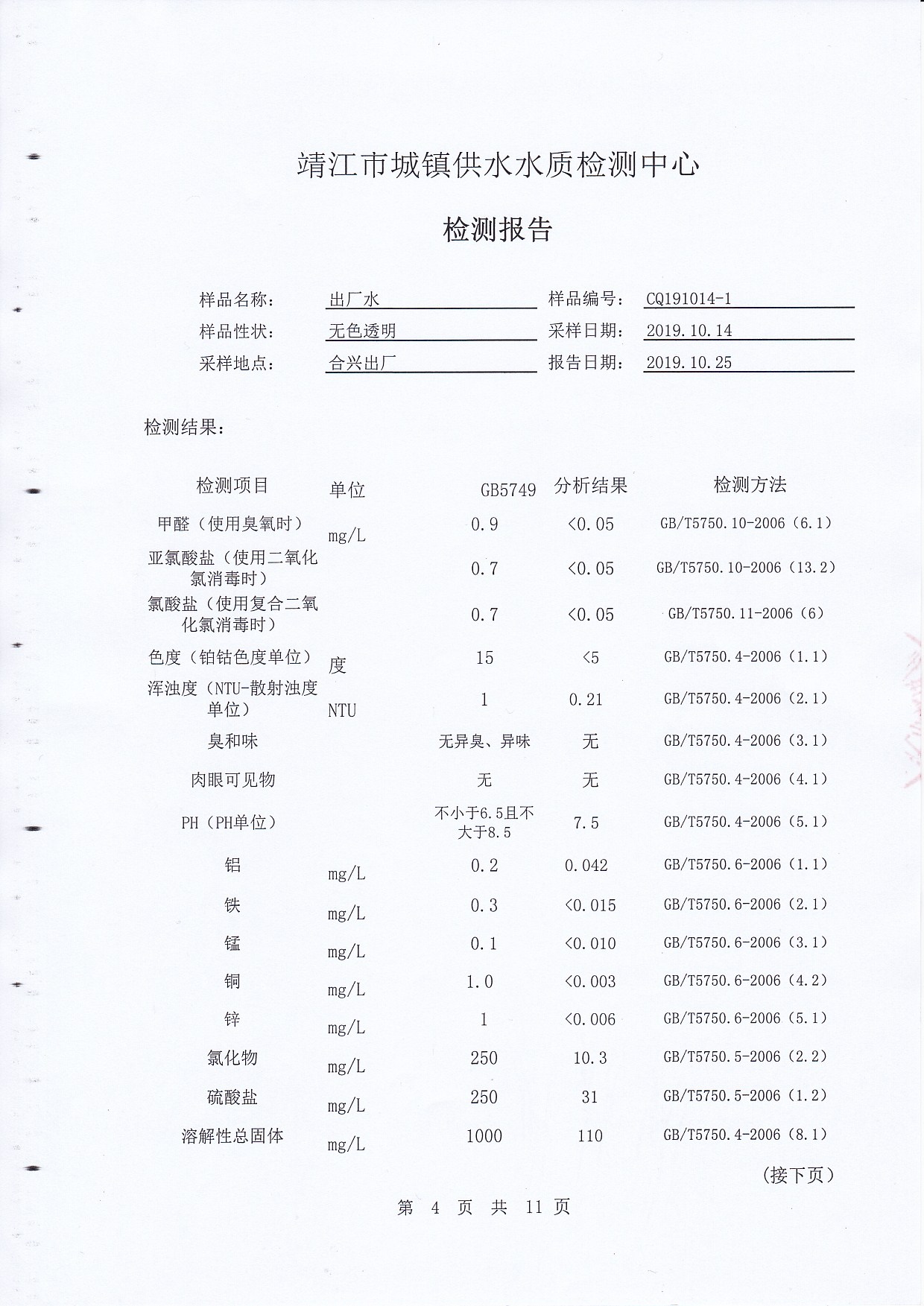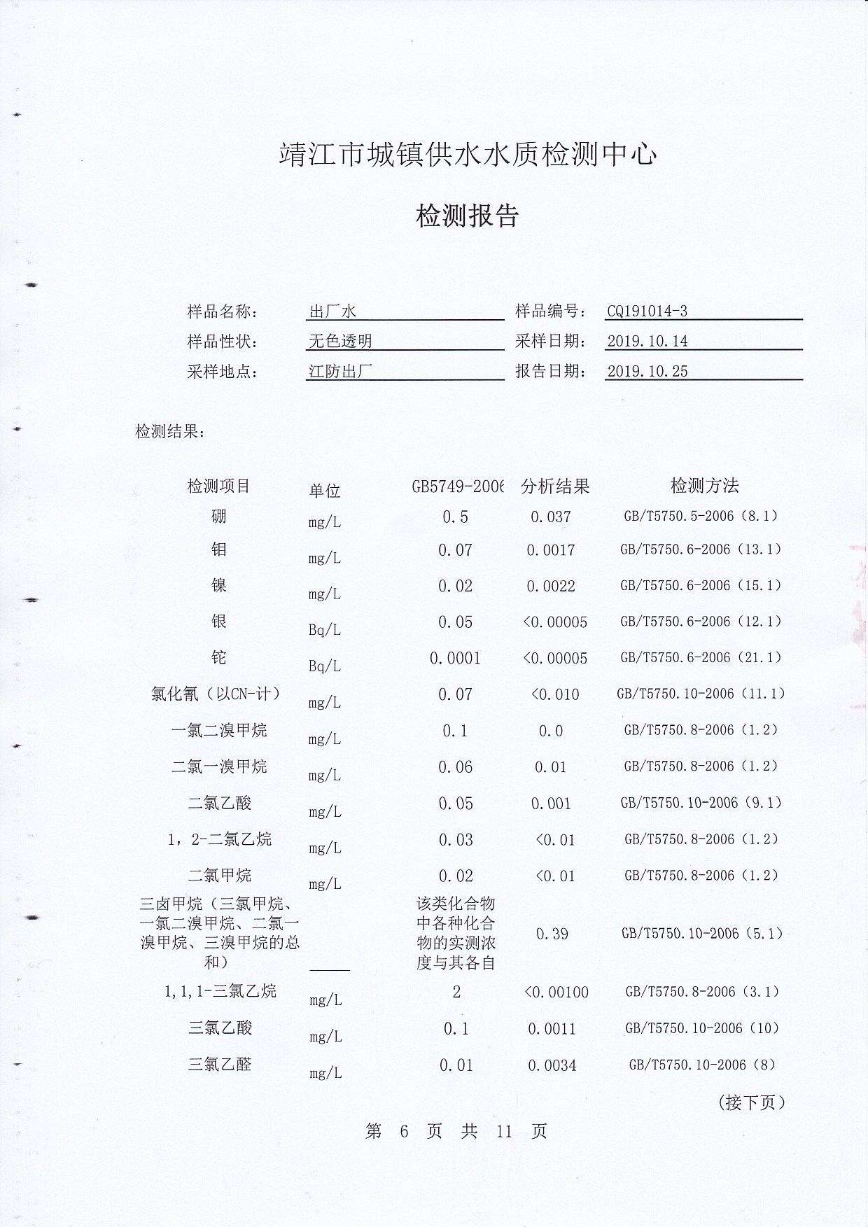 2019年上半年非常規(guī)水質(zhì)檢測(cè)報(bào)告