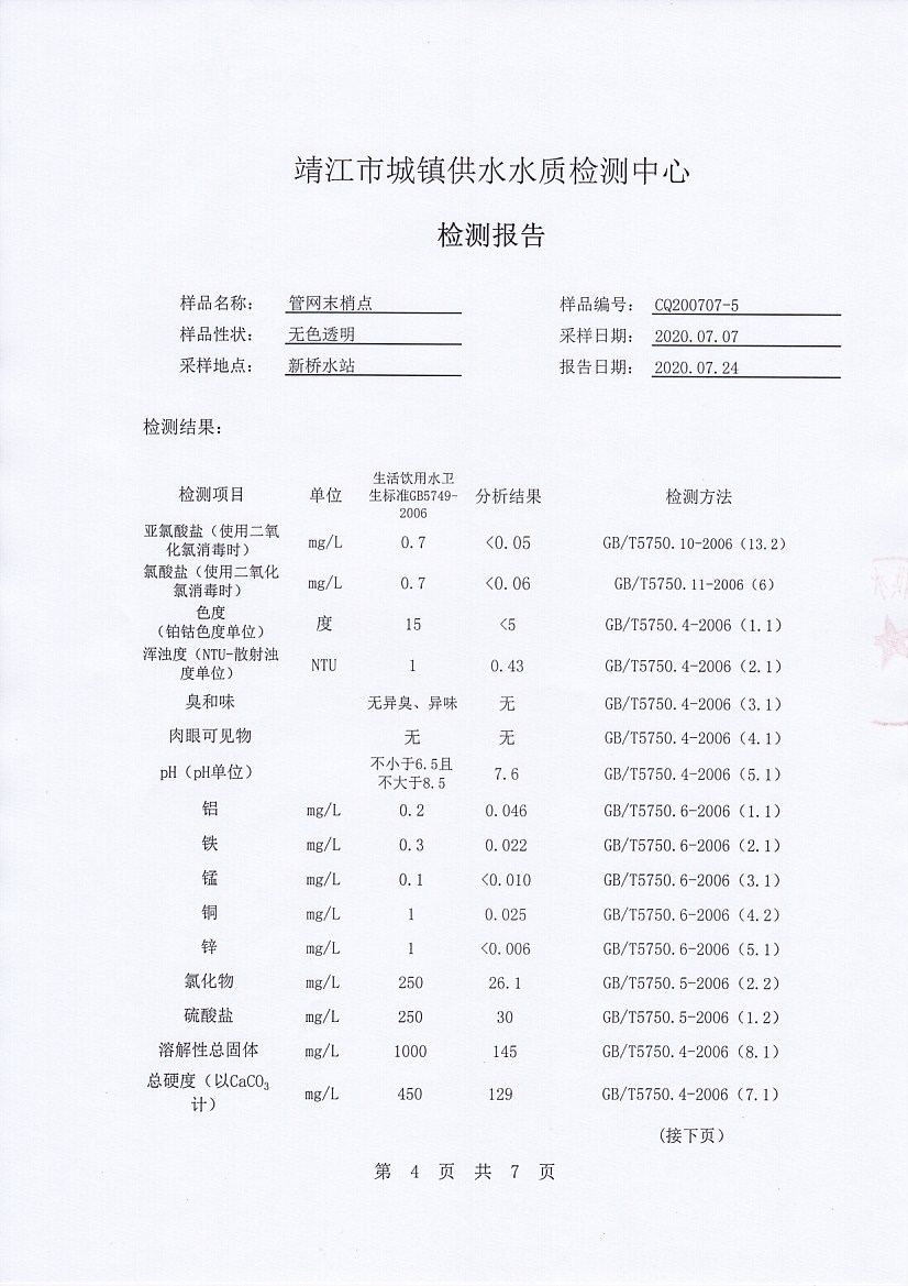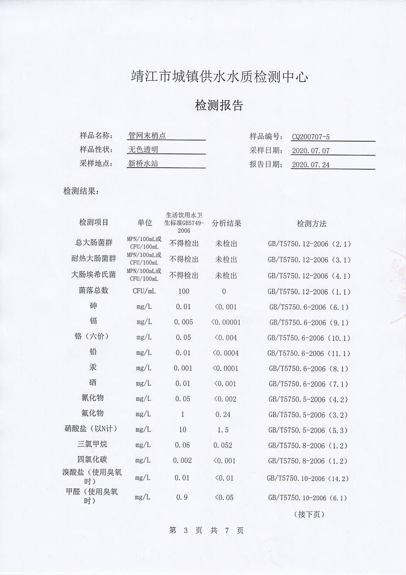 管網(wǎng)末梢水檢測報告2020.07.07