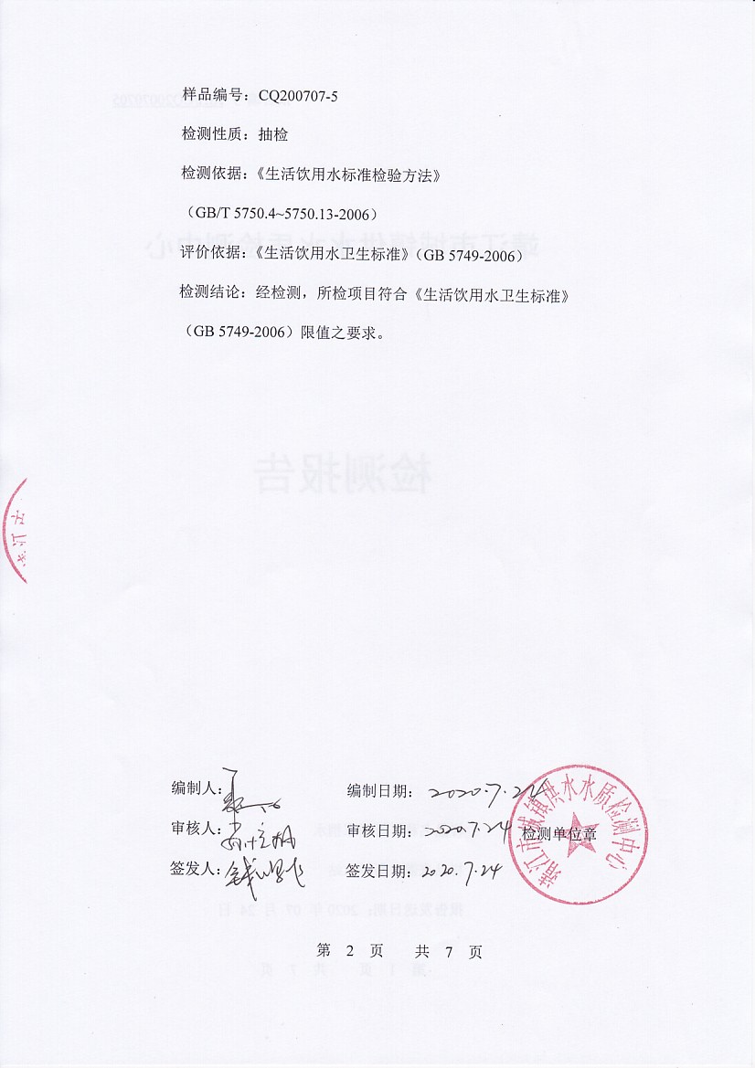 信息來源:華匯水務 ‖ 發(fā)稿作者:水質檢驗部 ‖ 發(fā)布時間:2020年7月24日 ‖ 查看6785次 ‖